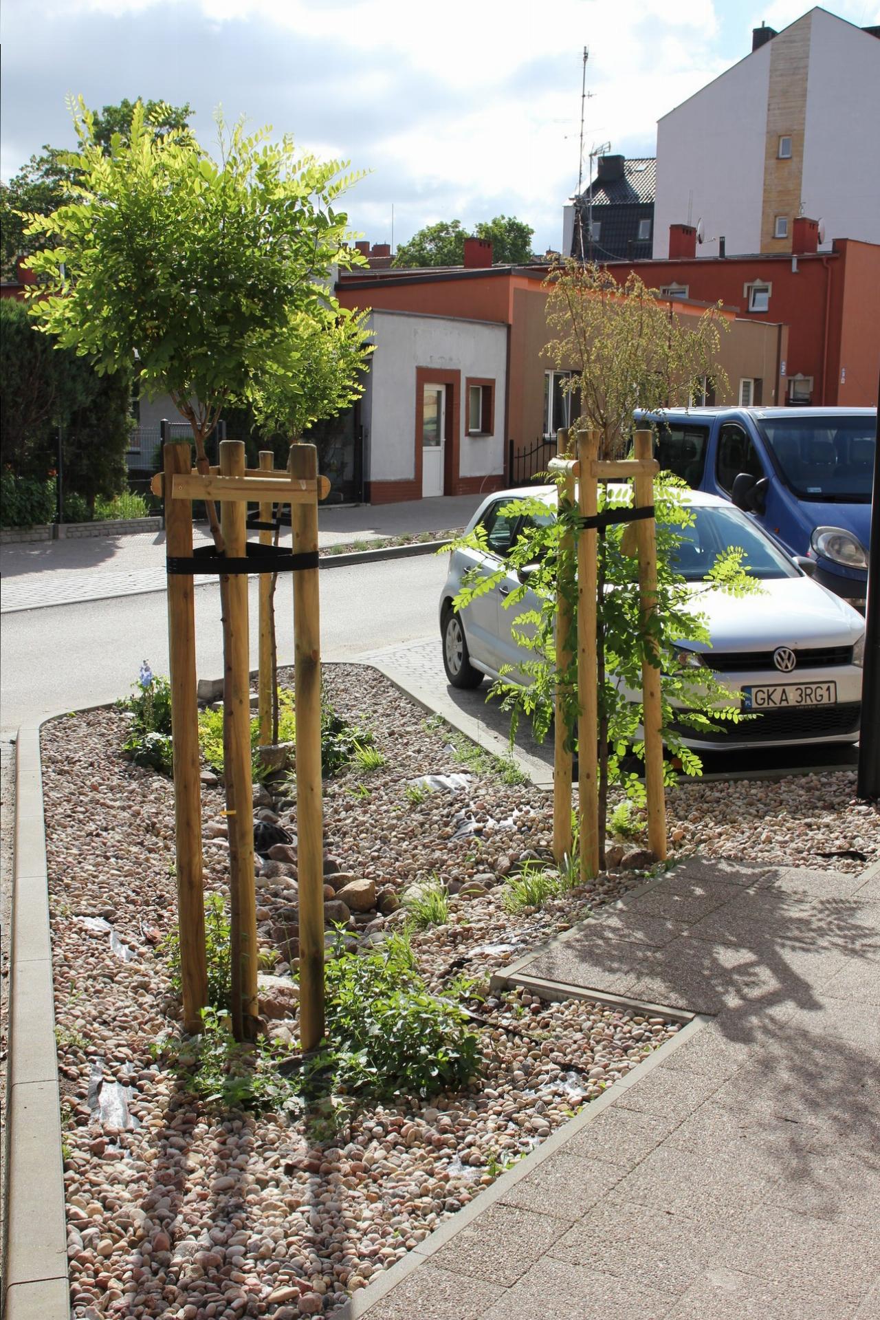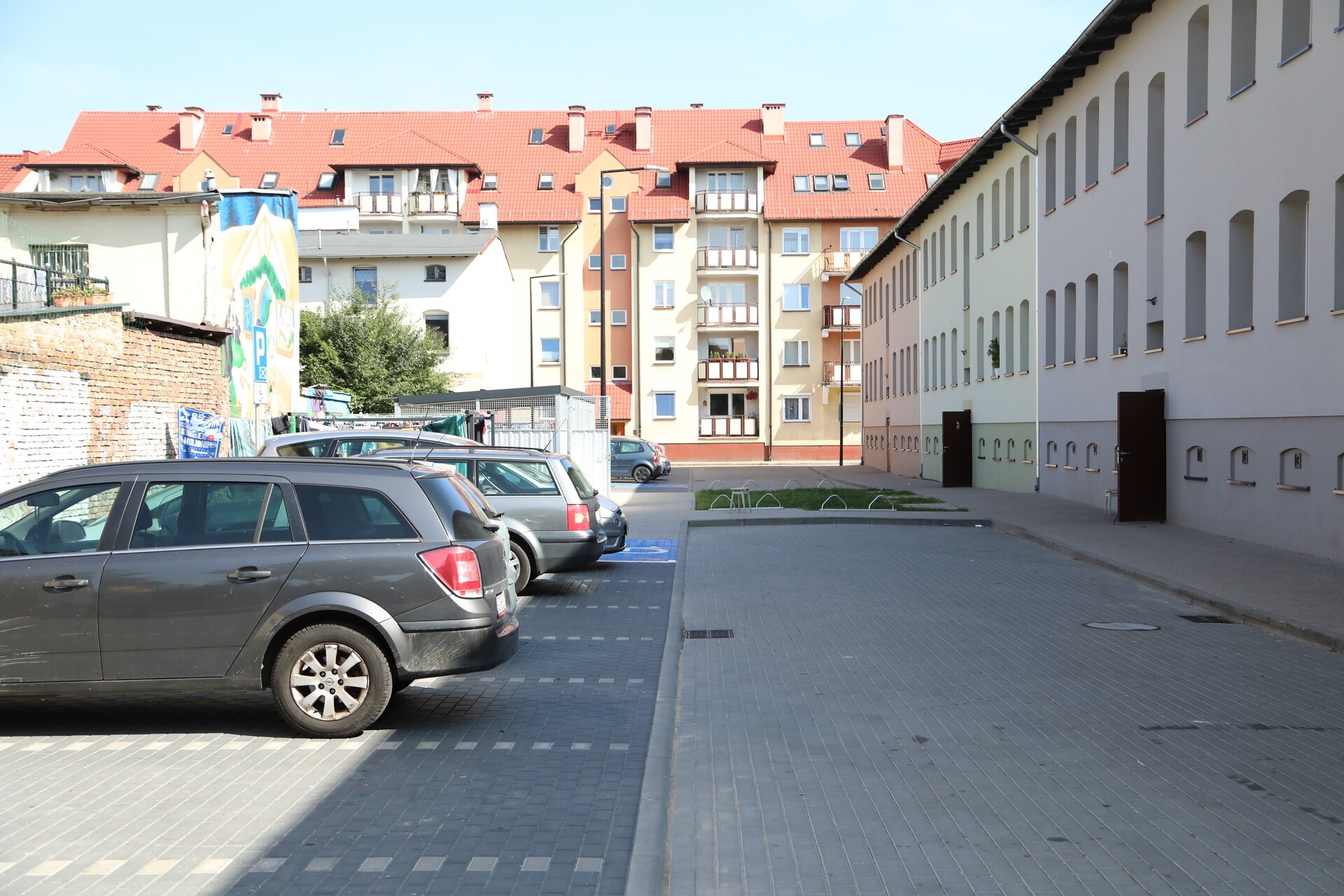Wielka zmiana odbyła się na terenie za budynkami Grunwaldzka nr 9-12. Powstało tam podwórze integracyjne z dużą ilością zieleni, miejscami postojowymi i oświetleniem.