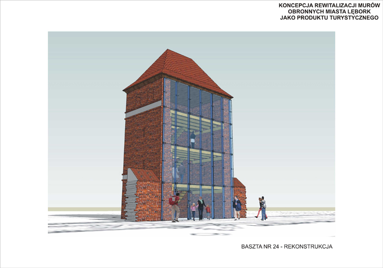 Każda z baszt odtwarzać będzie inny styl historyczny (XIV wiek, XIX wiek i początek XX wieku). Zostaną one zaadaptowane na cele kulturalne - w baszcie nr 24 przewidziana jest ekspozycja o tematyce militarnej: stara broń, uzbrojenie, elementy starodawnej techniki obronnej, w baszcie nr 27 zaplanowano wystawy zanikającego rękodzieła i rzemiosła (wikliniarstwo, kowalstwo i in.) oraz dzieł lokalnych twórców ludowych (rzeźbiarstwo, malarstwo itp.); w trzeciej z baszt - nr 32 mieścić się ma siedziba Lęborskiego Bractwa Historycznego.