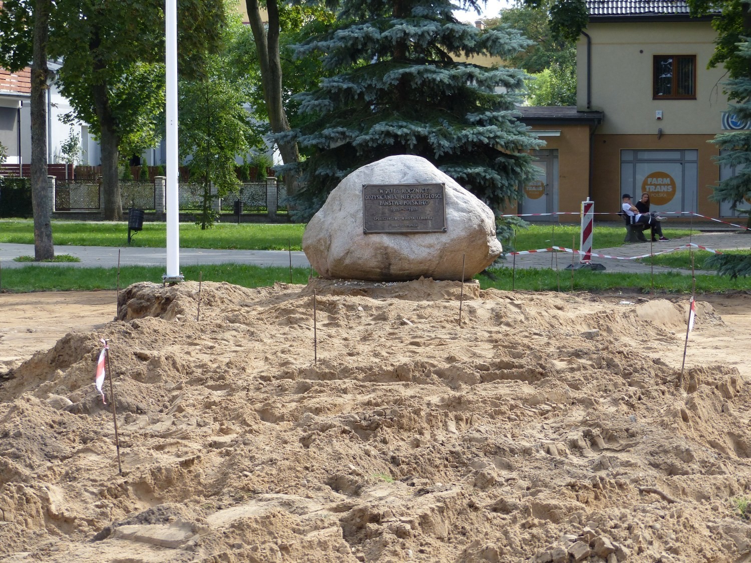 W związku z rocznicą 100-lecia Odzyskania przez Polskę Niepodległości w Lęborku podejmowane jest wiele inicjatyw jubileuszowych. Jedną z nich jest nowa aranżacja miejsca w którym odbywa się większość uroczystości patriotycznych (11 listopada, 3 Maja). Projekt zagospodarowania przyszłego skweru Orła Białego opracował plastyk miejski Rafał Synowiec. Obejmuje on utwardzenie szlachetną żółtą oraz żółto-szarą kostką granitową terenu przy obelisku, podświetlenie głazu oraz montaż 8 specjalnych lamp symbolizujących Ojców Niepodległości.