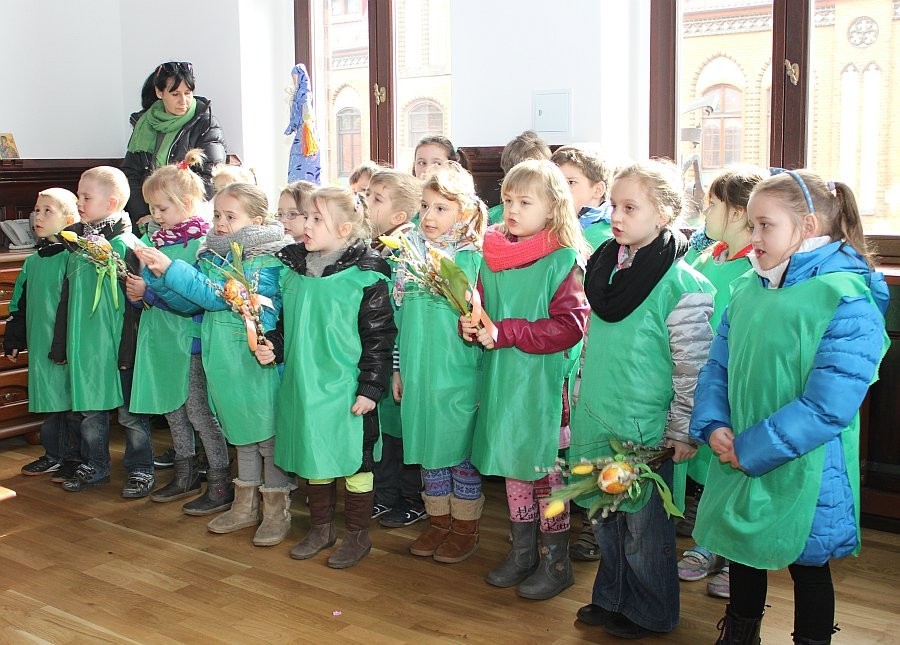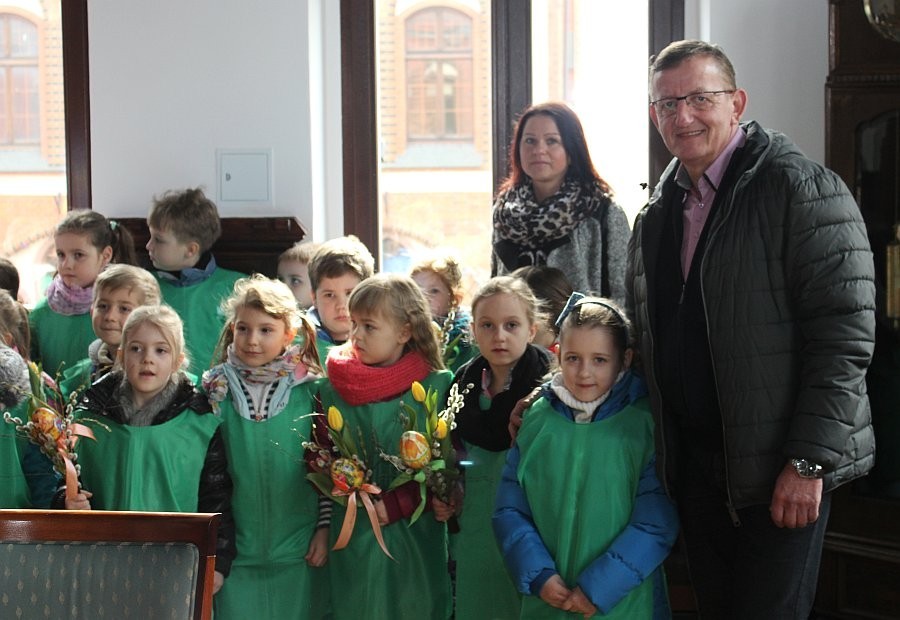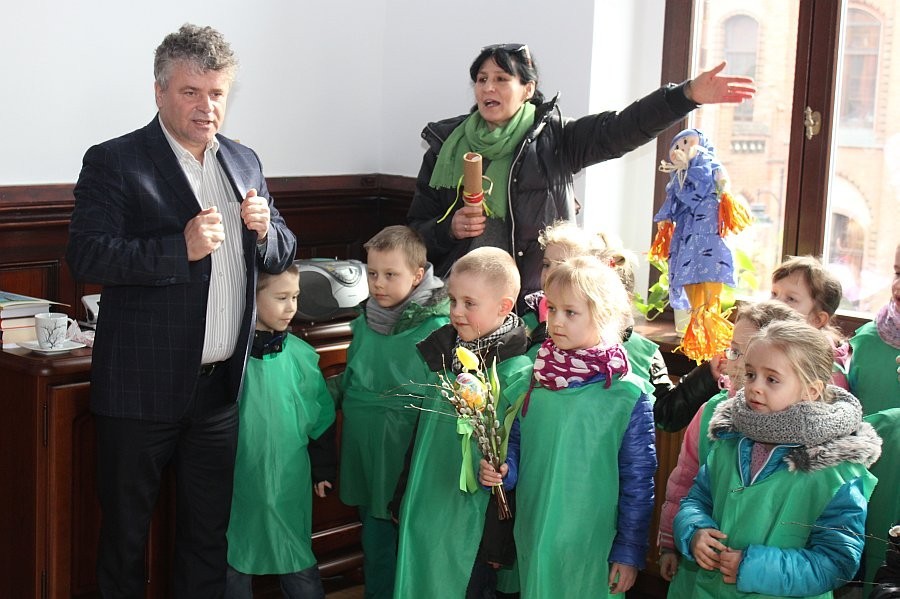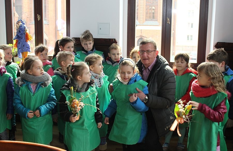 Pierwszy Dzień Wiosny w Lęborku rozpoczął się od wizyty dzieci z Przedszkola nr 6 w gabinecie Burmistrza Miasta Witolda Namyślaka. Przedszkolaki przygotowały wiosenne życzenia, piosenki oraz świąteczne dekoracje, a otrzymały słodkie upominki.