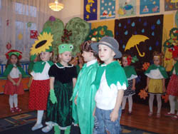 Mali aktorzy wystąpili w pięknych strojach przygotowanych przez nauczycielki Halinę Ługowską oraz Dorotę Majdę. Teatrzyk został owacyjnie przyjęty przez rodziców i gości. Na uroczystości gościł przedstawiciel Miasta, Sekretarz Miasta – pani Elżbieta Godderis, która wraz z panią dyrektor Ewą Długosz podziękowała dzieciom za występ - także słodkościami.