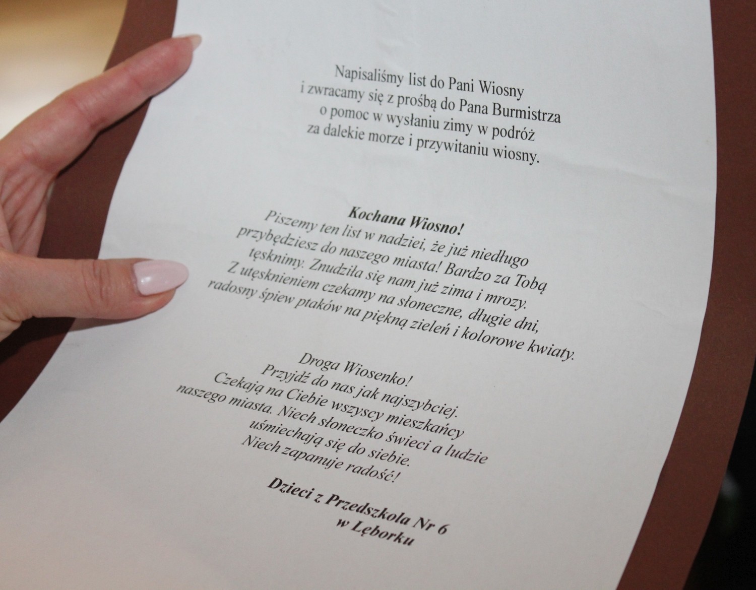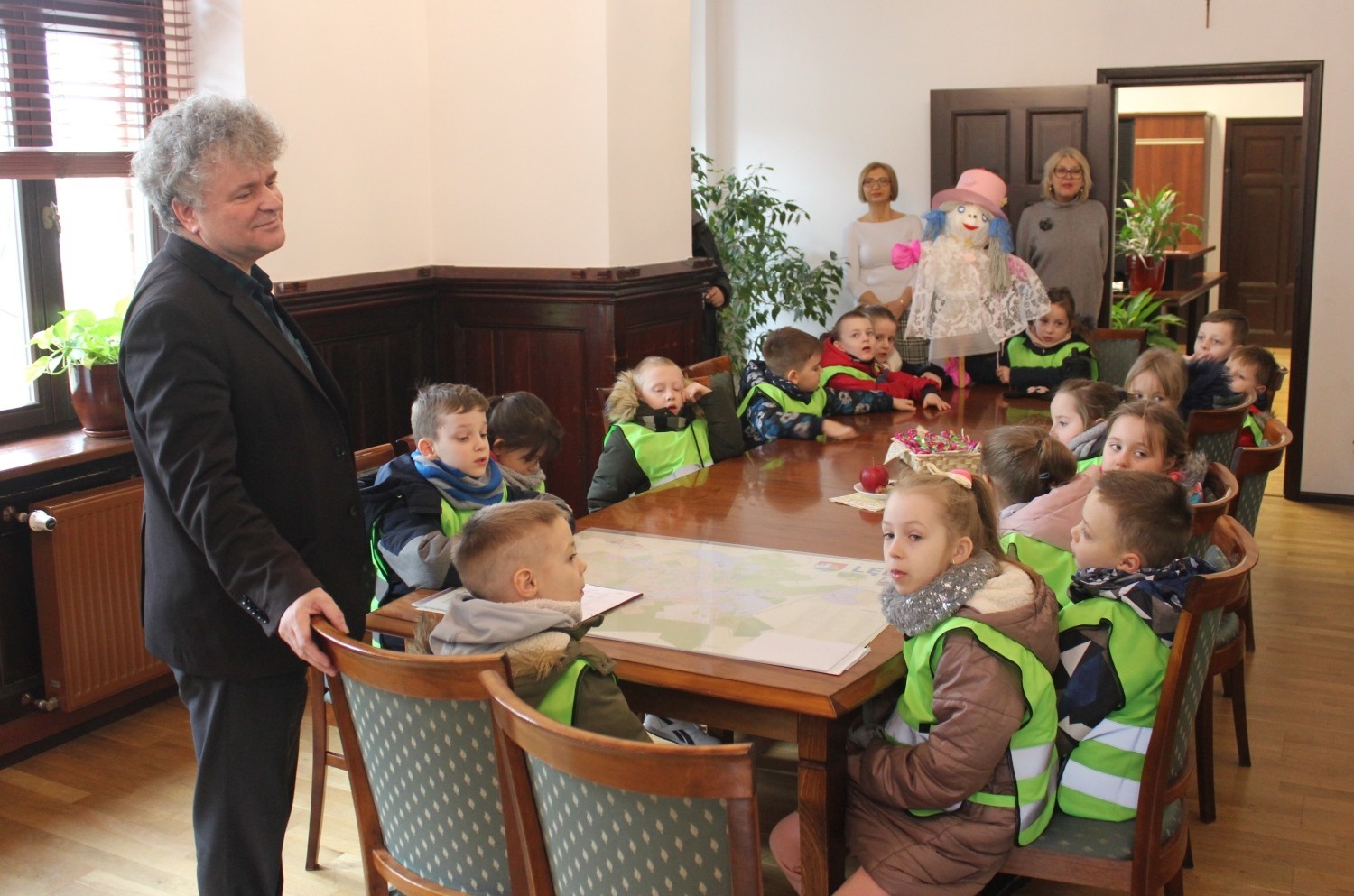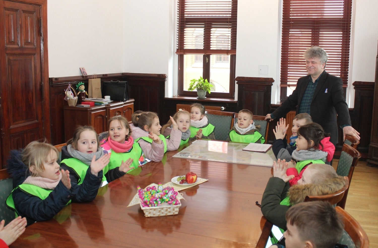 21 marca w Pierwszy Dzień Wiosny ratusz i Burmistrza Witolda Namyślaka odwiedziły przedszkolaki z Przedszkola nr 6. Grupa V przyniosła ze sobą własnoręcznie wykonaną marzannę oraz list z prośbą do burmistrza o pomoc w wysłaniu zimy w podróż za dalekie morze… Przedszkolaki zaprezentowali wiosenny wiersz i piosenkę a w podziękowaniu za serdeczną wizytą zostały obdarowane słodkościami.