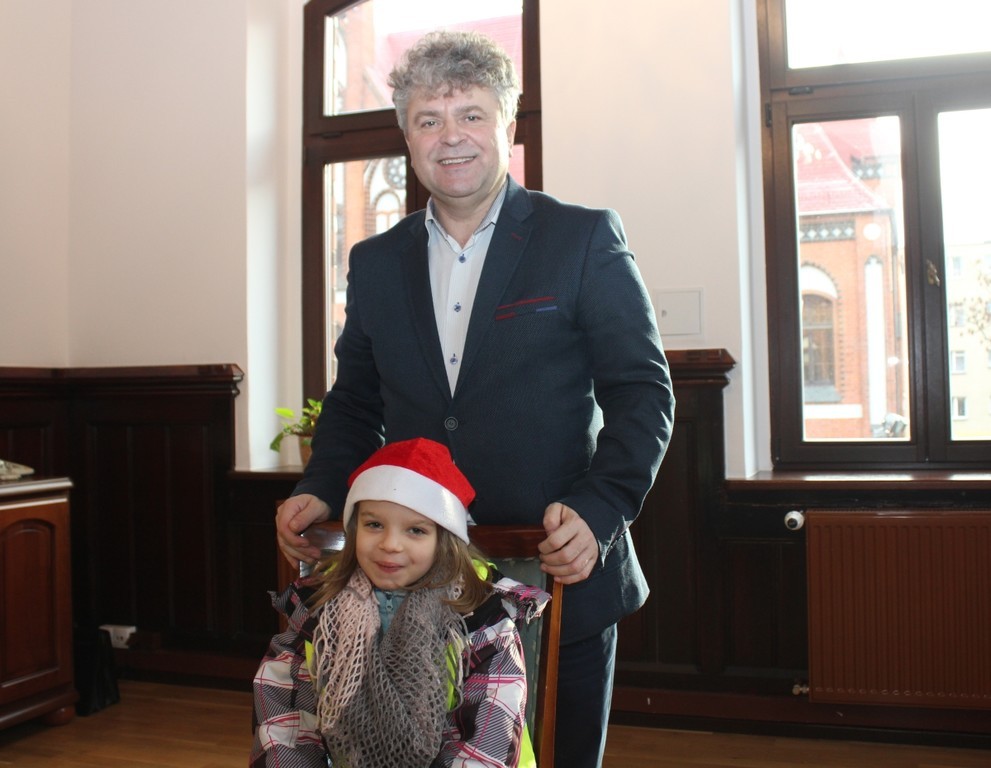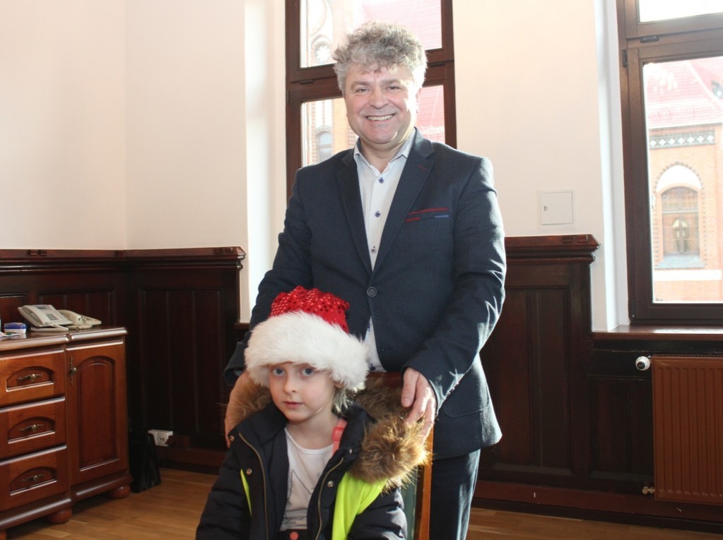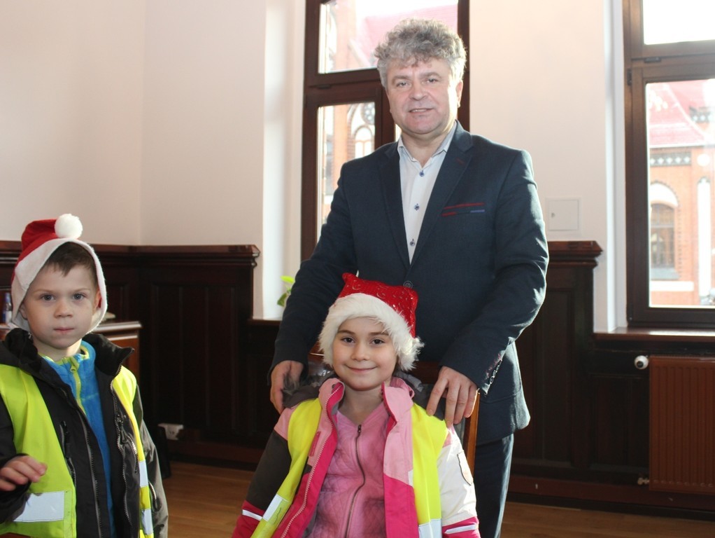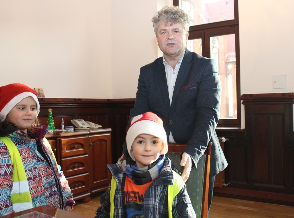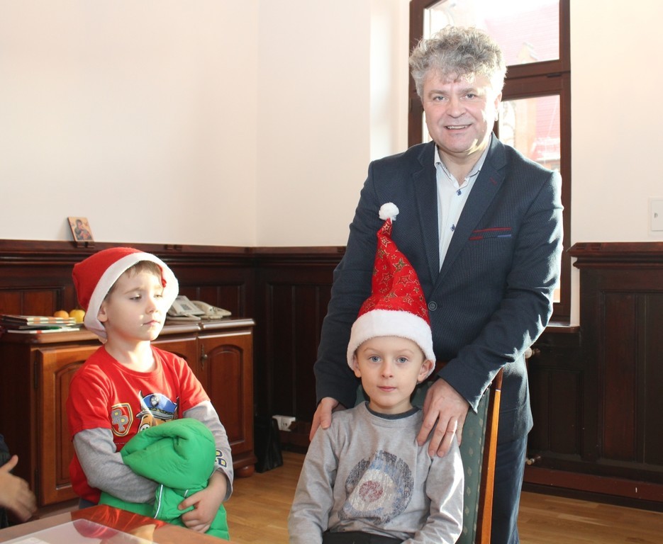Z świąteczną wizytą burmistrza odwiedziły przedszkolaki z Przedszkola nr 5. Przedszkolaki złożyły bożonarodzeniowe życzenia, oraz przekazały na ręce Witolda Namyślaka laurkę wykonaną przez jedną z mam. Nie zabrakło wspólnych zdjęć. Na koniec mili goście ratusza zostali obdarowani słodkościami.