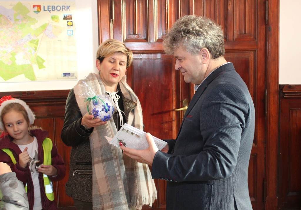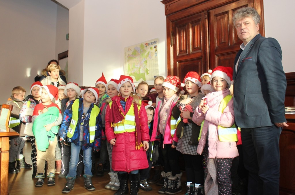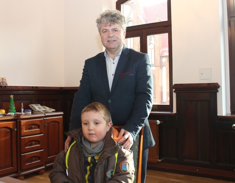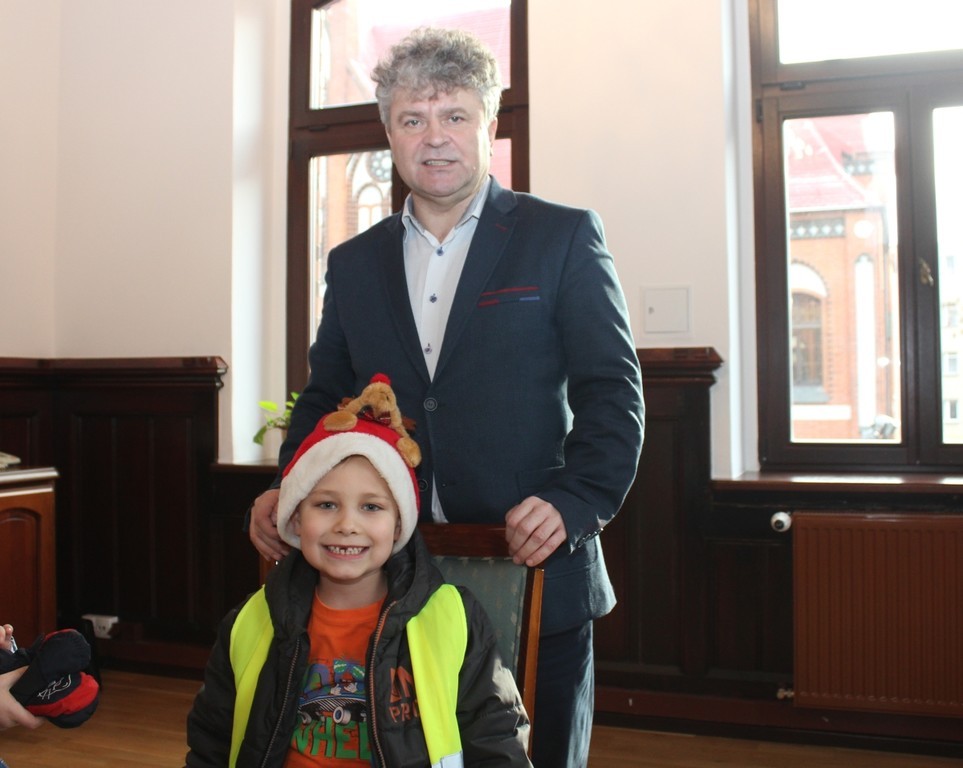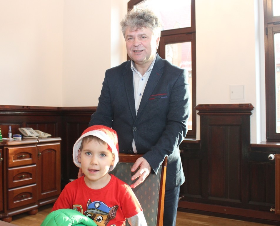 Z świąteczną wizytą burmistrza odwiedziły przedszkolaki z Przedszkola nr 5. Przedszkolaki złożyły bożonarodzeniowe życzenia, oraz przekazały na ręce Witolda Namyślaka laurkę wykonaną przez jedną z mam. Nie zabrakło wspólnych zdjęć. Na koniec mili goście ratusza zostali obdarowani słodkościami.