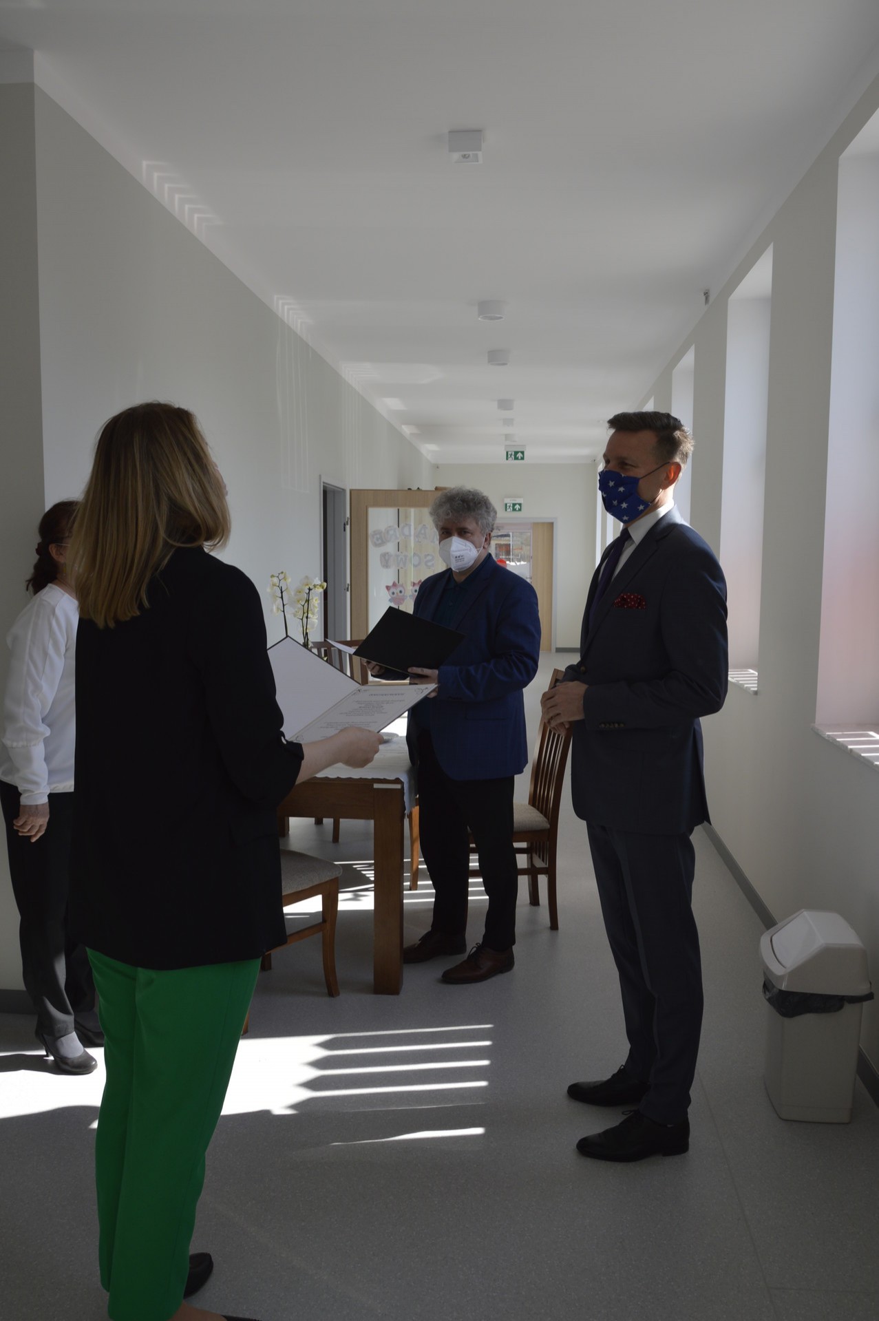 Samorządowcy złożyli gratulacje z okazji tak ważnej zmiany, jaka dokonała się i która wpłynie na komfort oraz efektywność pracy z dziećmi i funkcjonowanie placówki. Goście obejrzeli pachnące świeżością sale i nowoczesny sprzęt zarówno do zabawy, jak i zajęć terapeutycznych, chwaląc funkcjonalność i estetykę wnętrz oraz profesjonalizm kadry.