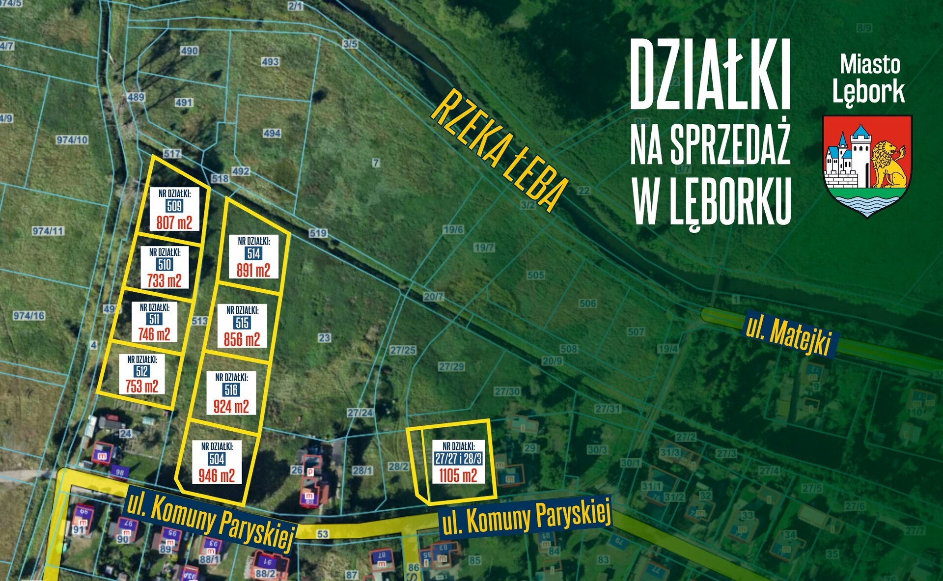 Urząd Miejski w Lęborku ogłasza przetarg ustny nieograniczony na sprzedaż 9 nieruchomości gruntowych niezabudowanych położonych przy ul. Komuny Paryskiej. Działki przeznaczone są pod zabudowę mieszkaniową jednorodzinną w formie budynków wolnostojących.