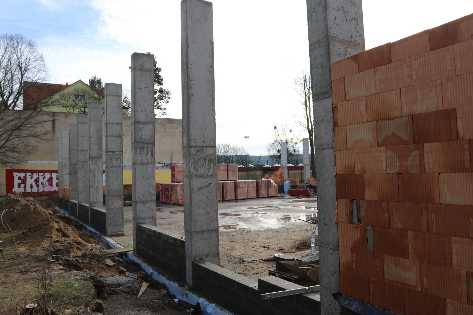 Nowoczesny obiekt infrastruktury sportowej budowany jest przez Konsorcjum MZB Maciej Zaręba z Wilkowa Nowowiejskiego (lider konsorcjum) i Zakład Budowlany Dzida i Zaręba Sp. J. z Lęborka (członek konsorcjum). Umowa z wykonawcą została podpisana 6 listopada ubr. Termin realizacji określony został do 28 sierpnia br.