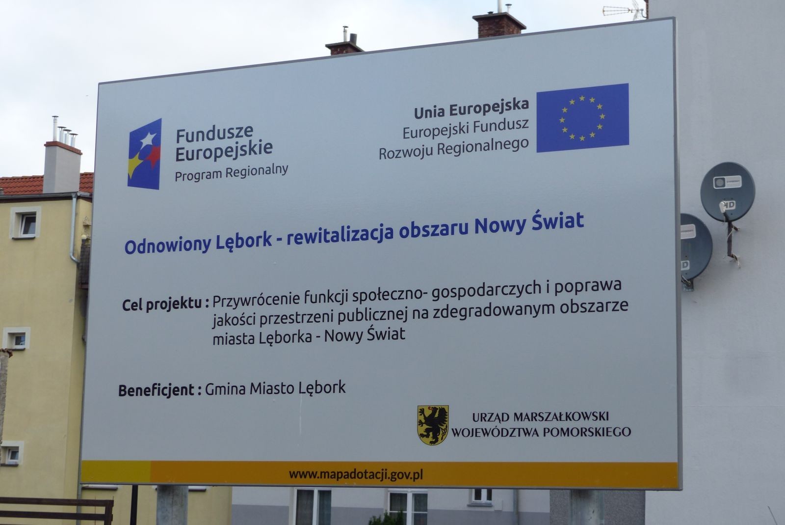 Budowa podwórek integracyjnych jest realizowana w ramach dużego projektu inwestycyjno-infrastrukturalnego „Odnowiony Lębork - rewitalizacja obszaru Nowy Świat”. Jego łączna wartość to aż 20 mln 467 tys. zł w tym 11 mln 423 tys. zł to pozyskana przez Miasto Lębork unijna dotacja.