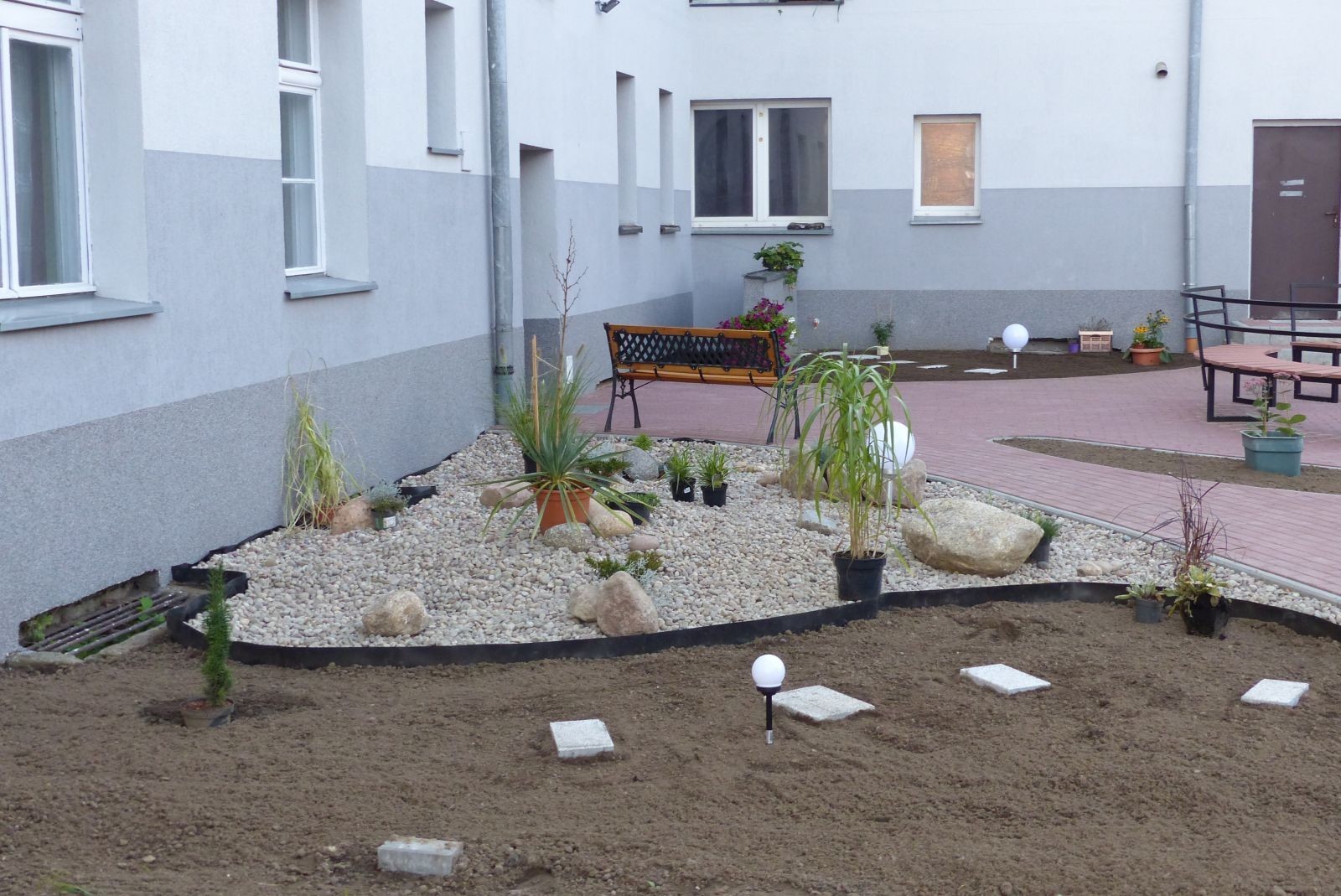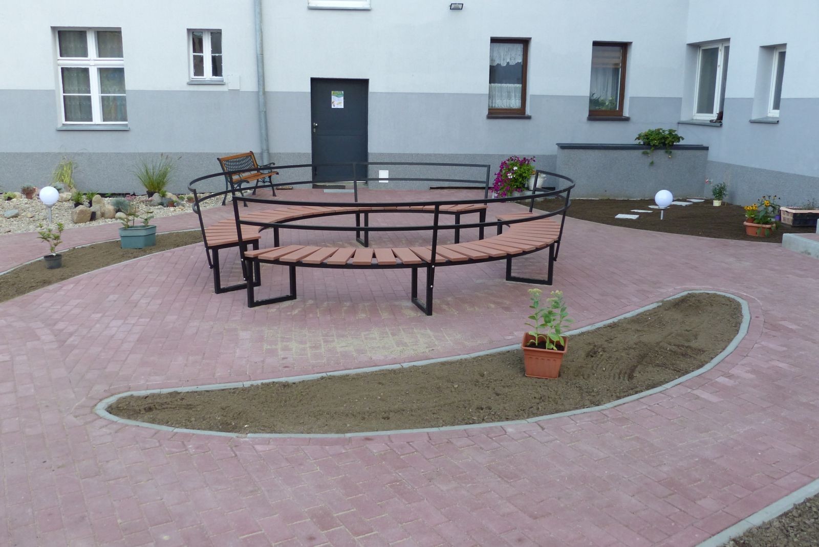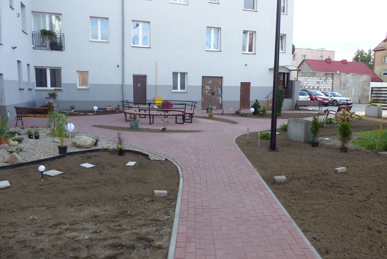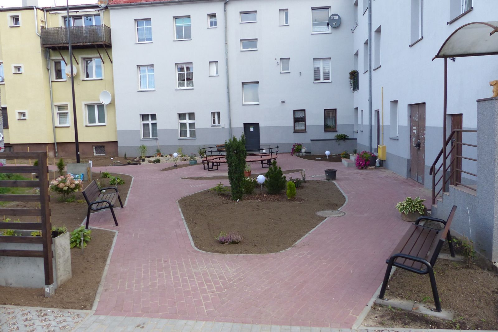 Zgodnie z projektem podwórko częściowo utwardzono płytami ażurowymi i betonową kostką tworząc miejsca parkingowe i chodniki. W ramach aranżacji zaplecza wielorodzinnych budynków postawiono 2 lampy oraz wiatę śmietnikową. Dzięki temu szare podwórko zmieni się w zielony teren wypoczynkowo-integracyjny z ławkami w tym jedną dużą w kształcie koła. Przewidziano też miejsce na skalniak dla roślin. Podwórko zostało ogrodzone, w drzwiach jest domofon. Aktualnie na podwórku sadzona jest wspólnie wybrana z mieszkańcami zieleń. Rewitalizacja to przede wszystkim bowiem zmiana społeczna. Atrakcyjne, nowe podwórko stworzy okazję do wypoczynku, rekreacji, interakcji międzysąsiedzkiej, podniesie bezpieczeństwo i zaangażuje mieszkańców w dbałość o otoczenie, pielęgnację zieleni itp. Wartość przebudowy podwórka oszacowano na 149 tys. zł.