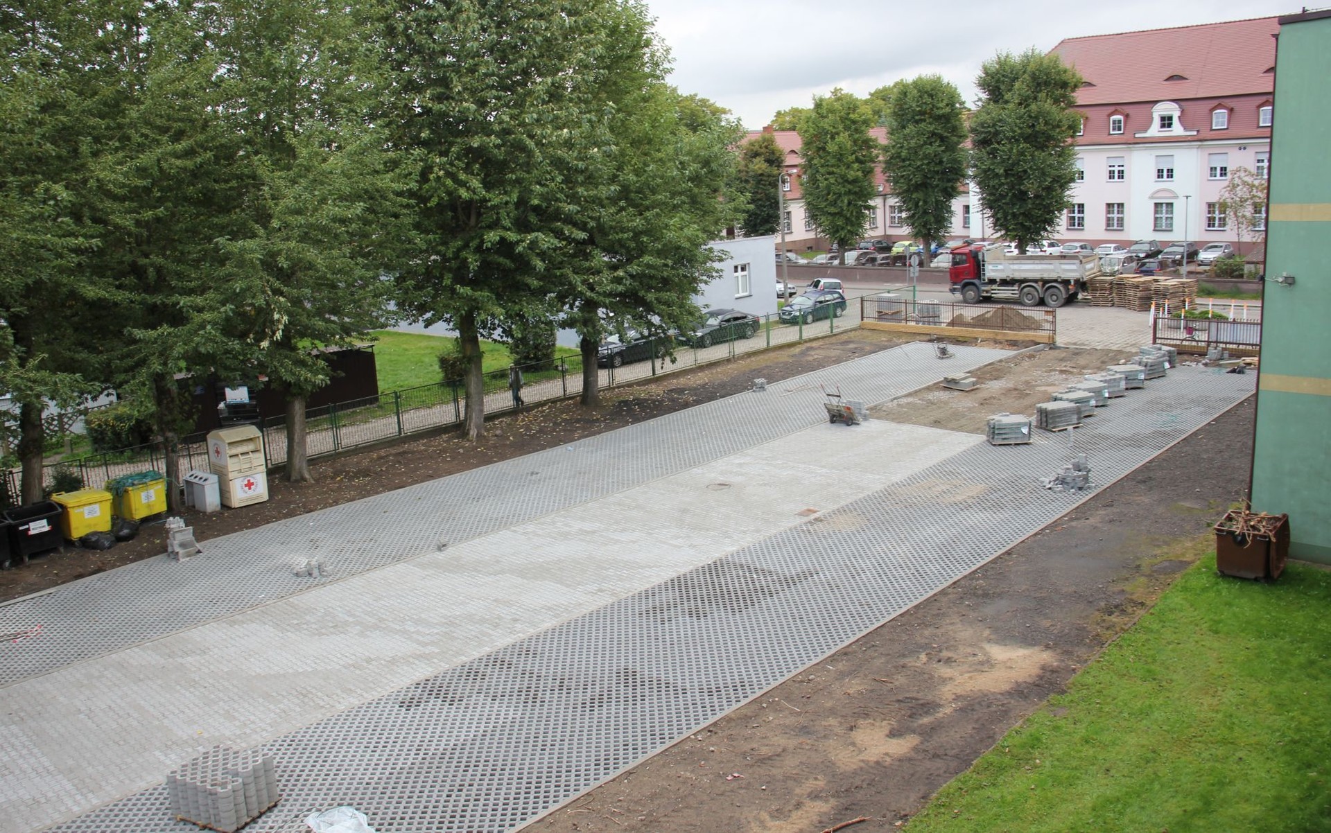 Na terenie Szkoły Podstawowej nr 8 przy ulicy Mireckiego trwa budowa dużego parkingu. W ramach parkingowej inwestycji uporządkowano przyszkolny plac wytyczając na nim drogę dojazdową z kostki betonowej z odwodnieniem i 32 miejsca postojowe. Będą one utwardzone płytami typu MEBA.