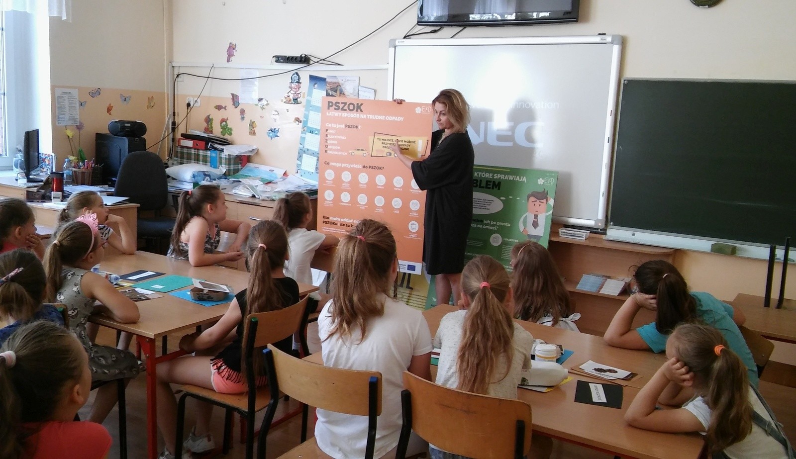Budowa PSZOK-u obejmuje także działania informacyjno-edukacyjne. We wszystkich klasach II i III publicznych szkół podstawowych przeprowadzonych zostało 29 lekcji-warsztatów o segregacji śmieci (na zdjęciach zajęcia w Szkole Podstawowej nr 3).