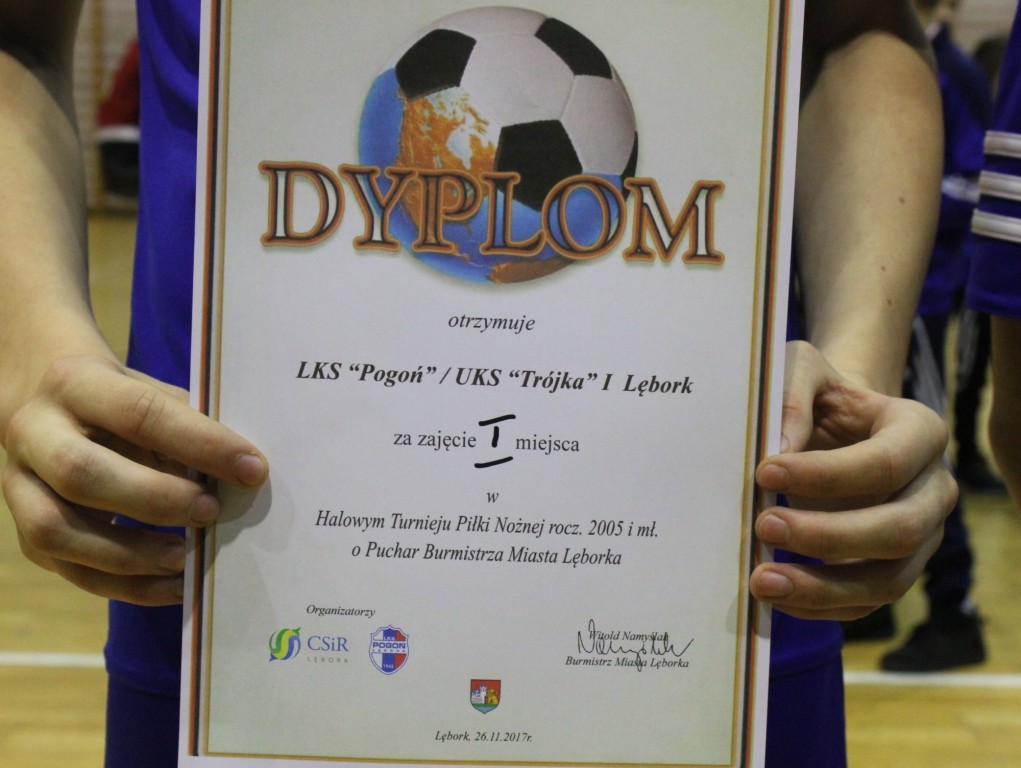 Dyplomy, medale i puchary w imieniu burmistrza Lęborka wręczył Dyrektor CSiR Marian Borek, oraz Wiceprezes LKS Pogoń ds. piłki nożnej Marek Piotrowski. Organizatorem całodniowego turnieju było Centrum Sportu i Rekreacji w Lęborku, Lęborski Klub Sportowy Pogoń oraz przede wszystkim Uczniowski Klub Sportowy „Trójka” Lębork w tym pomysłodawca turnieju Andrzej Małecki i grono rodziców młodych piłkarzy.