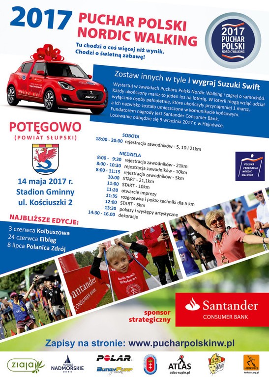 Gmina Potęgowo serdecznie zaprasza wszystkich chętnych do wzięcia udziału w zawodach Pucharu Polski Nordic Walking, które odbędą się w niedzielę, 14 maja 2017 roku.