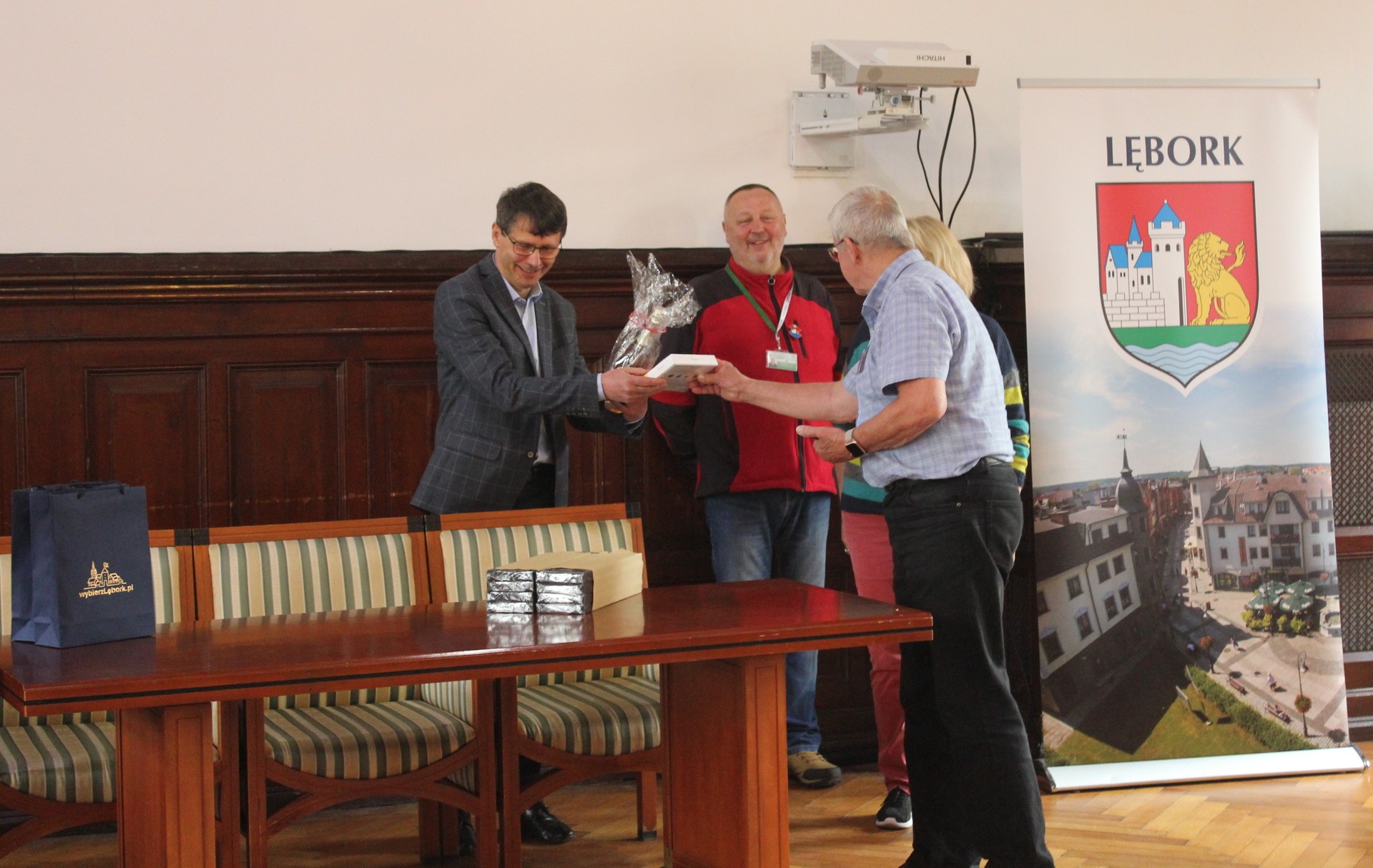 Wszyscy uczestnicy wizyty otrzymali materiały promocyjne Lęborka.