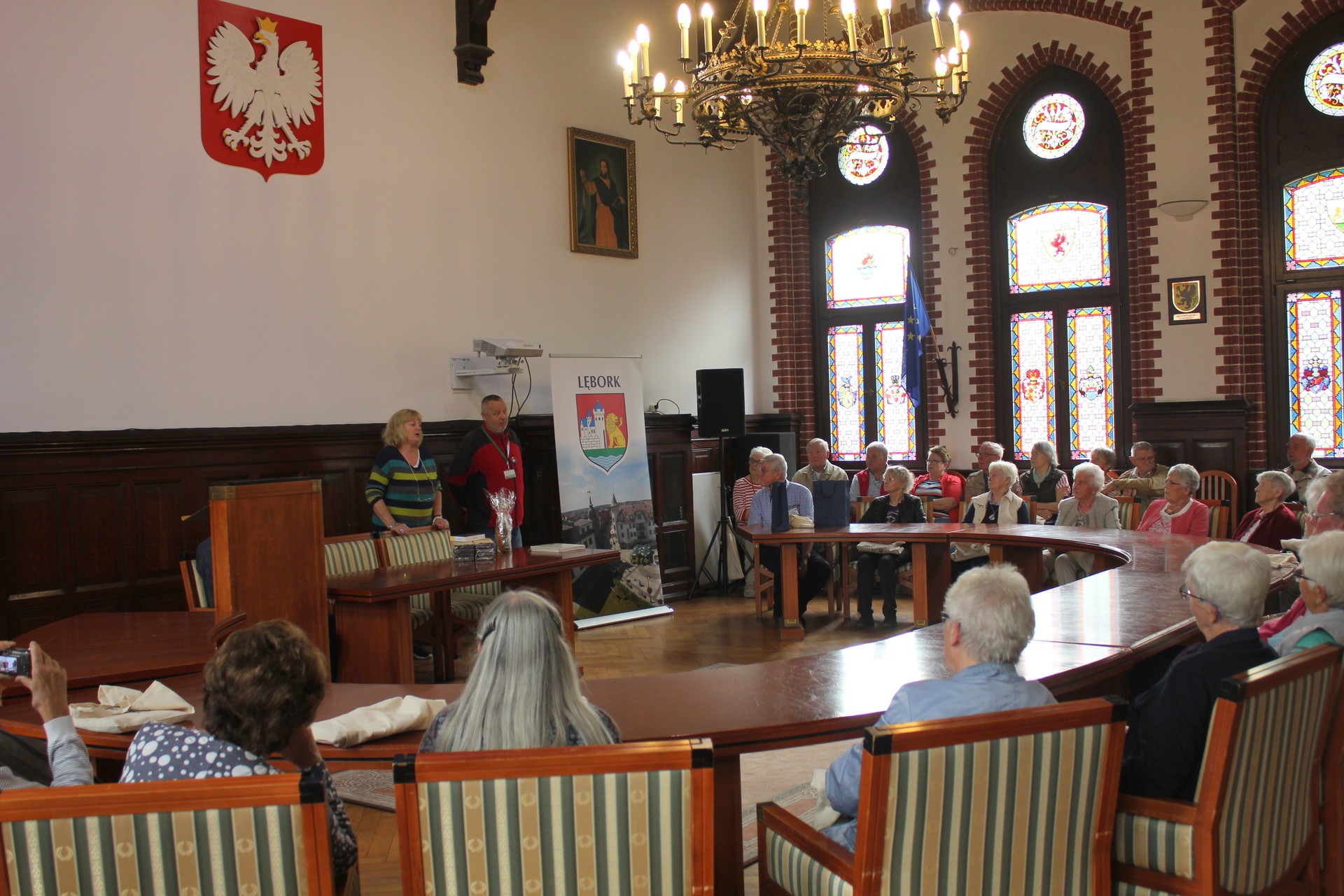 Uczestnicy wycieczki zwiedzili Salę Rajców oraz skarbiec. Historię naszego ratusza, miasta oraz herbu przedstawił im lęborski przewodnik Jan Kiśluk. Większość gości była osobiście związana z Pomorzem, a jedna z nich urodziła się nawet w Lęborku.