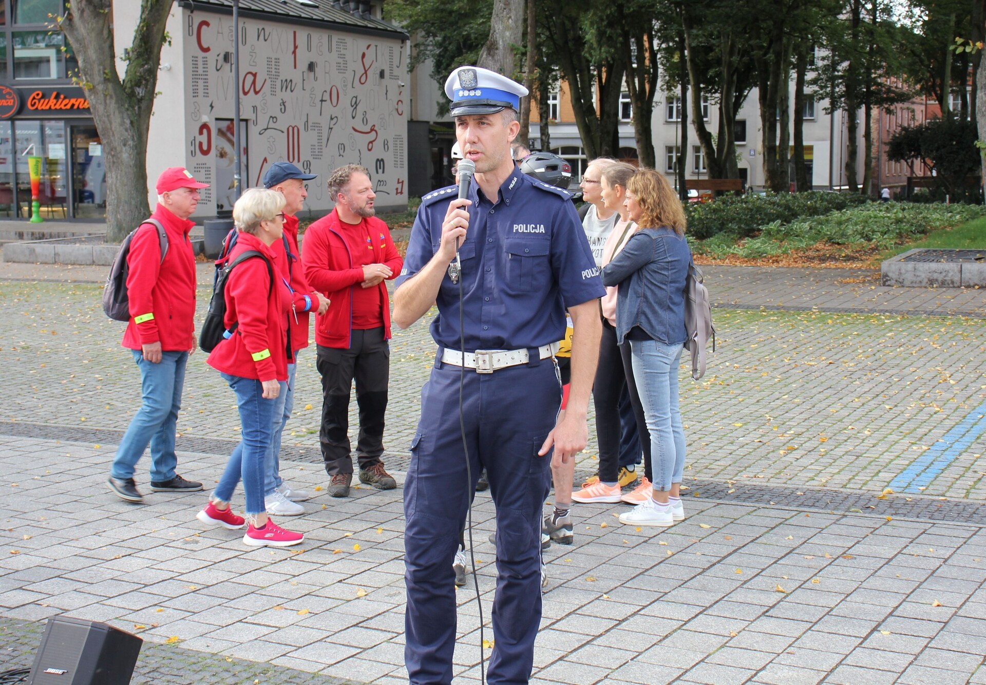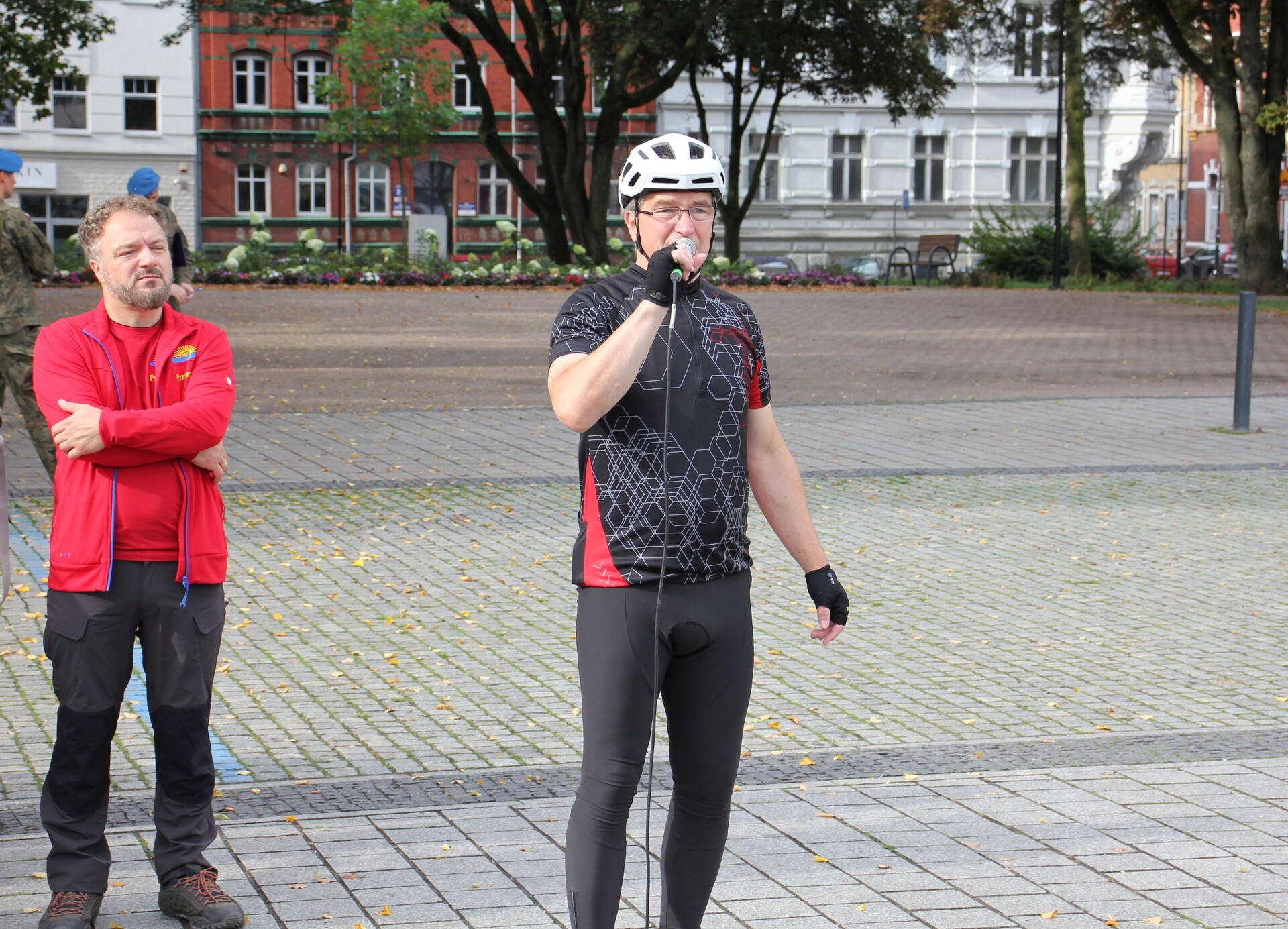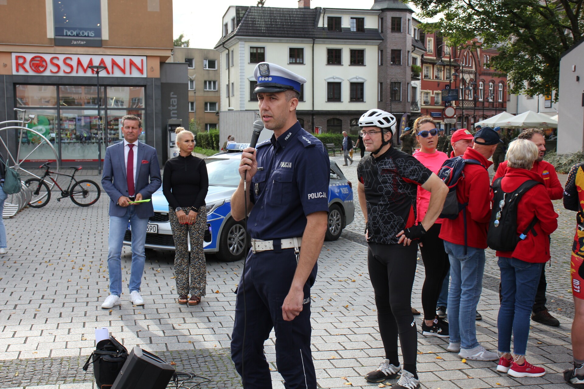 Przed wyruszeniem w trasę krótką prelekcję poświęconą zasadom bezpieczeństwa w ruchu drogowym, w tym używaniu po zmierzchu elementów odblaskowych wygłosił Naczelnik Wydziału Ruchu Drogowego Komendy Powiatowej Policji w Lęborku asp. sztab. Arkadiusz Loda