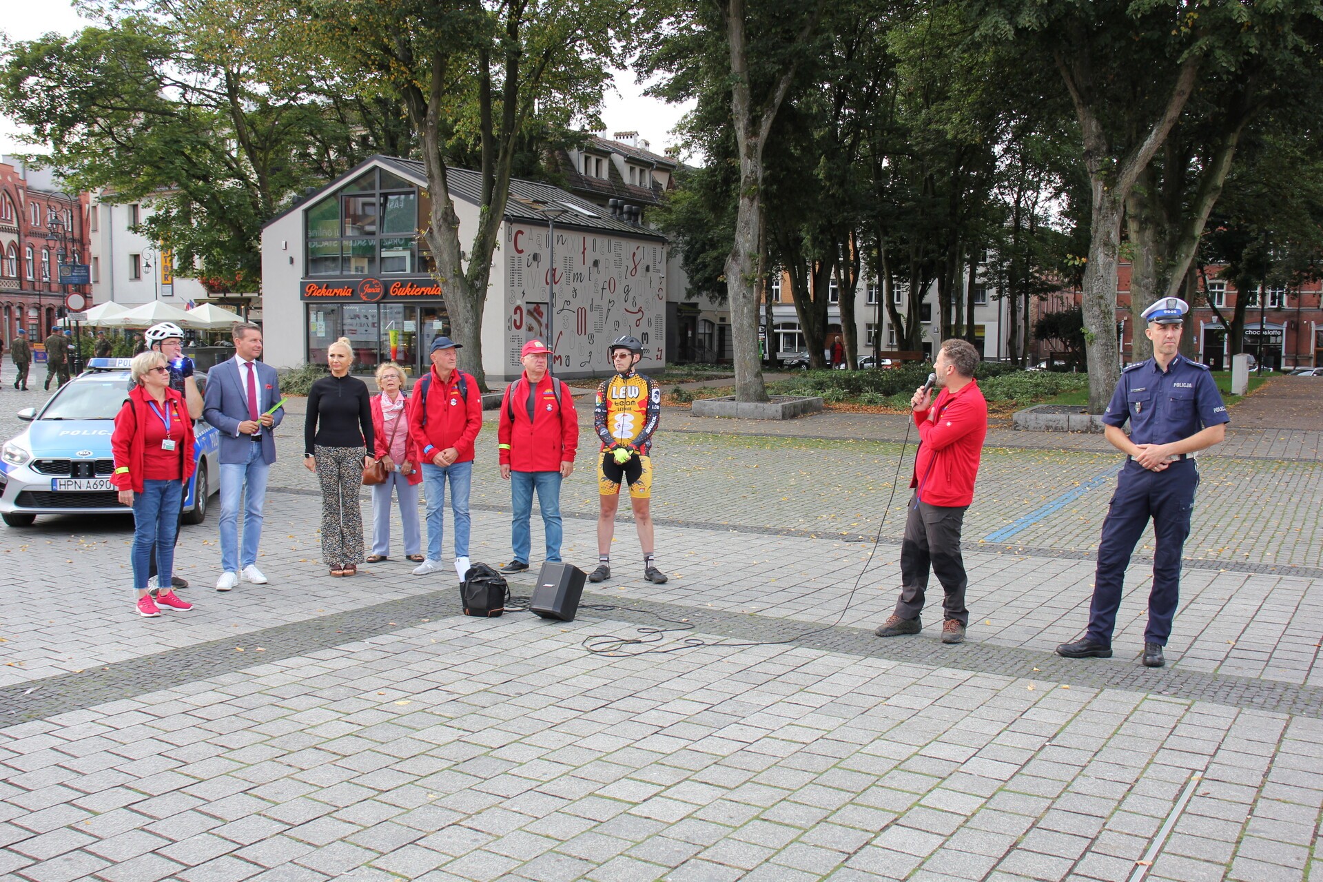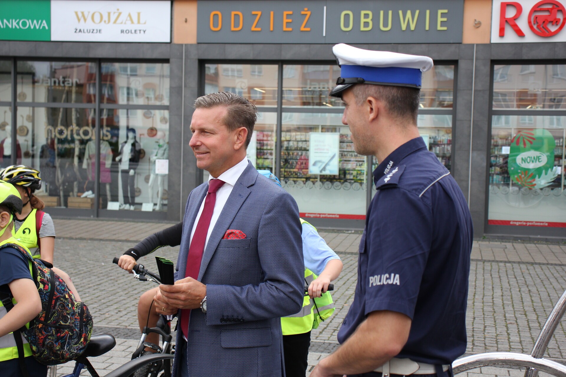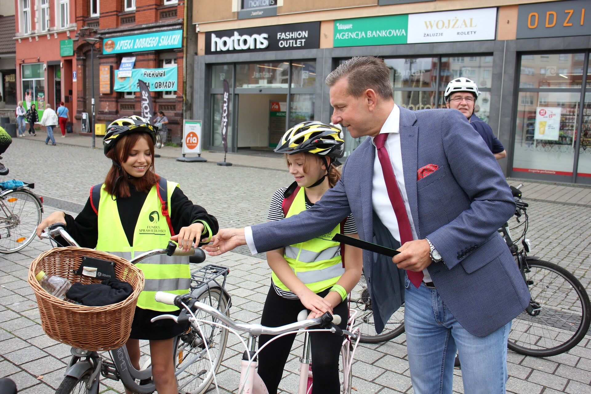 Sekretarz Marian Kurzydło pogratulował z imieniu burmistrza Lęborka prezesowi Lokalnej Organizacji Turystycznej „Ziemia Lęborska-Łeba” Konradowi Chmielowi za inicjatywę, uczestnikom życzył bezpiecznego wędrowania i jeżdżenia, a nauczycielom podziękował za towarzyszenie w tym dniu dzieciom i młodzieży. Uczestnikom wręczył też odblaskowe opaski zwiększające widoczność pieszego lub rowerzysty po zmierzchu i w zmroku.