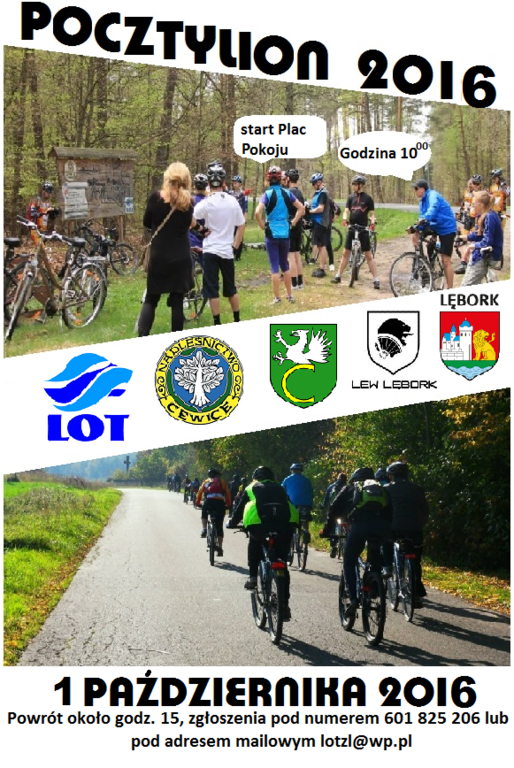 Rajd rowerowy Pocztylion organizowany jest w sobotę 1 października. Uczestnicy rajdu zbierają się na Placu Pokoju, skąd o godz. 10.00 wyruszą w trasę. Powrót zaplanowany jest około godz. 15.00.