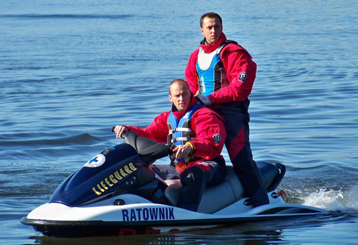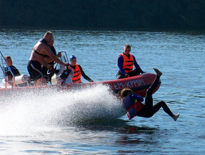Słoneczną pogodą i ciepłą wodą przywitało Jezioro Lubowidz 19 września br. na plaży miejskiej "Miron" uczestników Warsztatów Ratowniczych przy użyciu sprzętu motorowodnego. Ratownicy WOPR ćwiczyli skoki z łodzi, współpracę z skuterami wodnymi, wyciąganie tonących z wody. Na brzegu swoje umiejętności doskonaliła Ochotnicza Służba Ratownicza. Nieoczekiwanie w wodnych ćwiczeniach wziął udział burmistrz Włodzimierz Klata, kilkukrotnie wyciągany z wody przez ratowników.