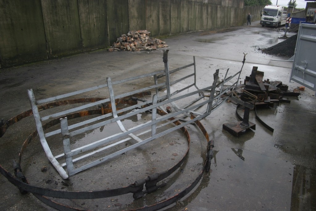 Systematycznie zlecana kontrola pionowości komina ceramicznego wykazała niebezpieczne odchylanie się jego końcówki (odcinek o długości około 6 m) od pionu. Zlecona ekspertyza wykazała pęknięcie górnego segmentu komina, skorodowane obręcze i częściowo wypłukane fugi oraz odpadające główki cegieł trzonu komina. W zaleceniach ekspertyzy było pilne zmniejszenie wysokości komina o około 5 m w celu odzyskania jego stateczności. Przyczyną takiego stanu technicznego budowli była najprawdopodobniej erozja materiałów. Na podstawie ekspertyzy i wniosku Miejskiego Przedsiębiorstwa Energetyki Cieplnej Sp. z o.o. do Powiatowy Inspektor Nadzoru Budowlanego wydał decyzję nakazującą rozbiórkę fragmentu trzonu komina pod rygorem natychmiastowej wykonalności.