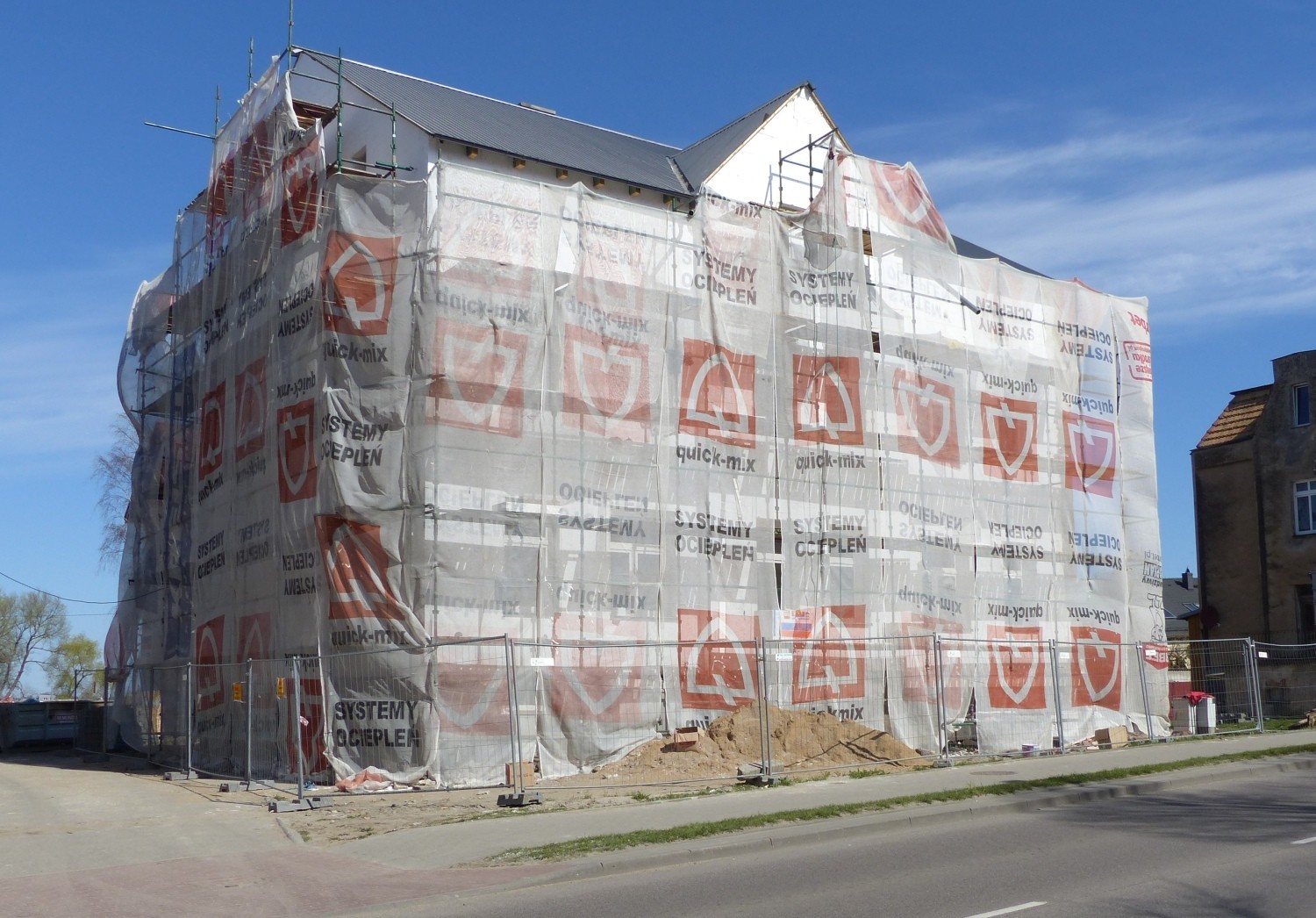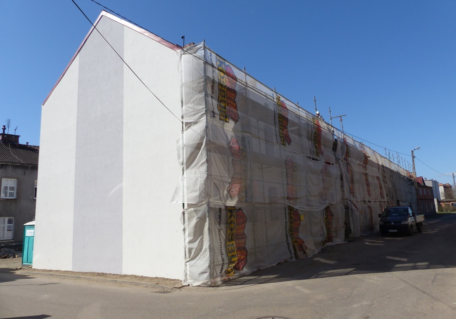 Trwa remont dwóch budynków komunalnych nr 93-96 przy ulicy Gdańskiej. Zakres prac obejmuje wykonanie ocieplenia, remont dachu, wymianę okien, rur spustowych, rynien oraz zewnętrznych drzwi wejściowych. Remont wykonuje za kwotę 575.310 zł firma EL-TEAM Tomasz Kosiński z Wrześcia.