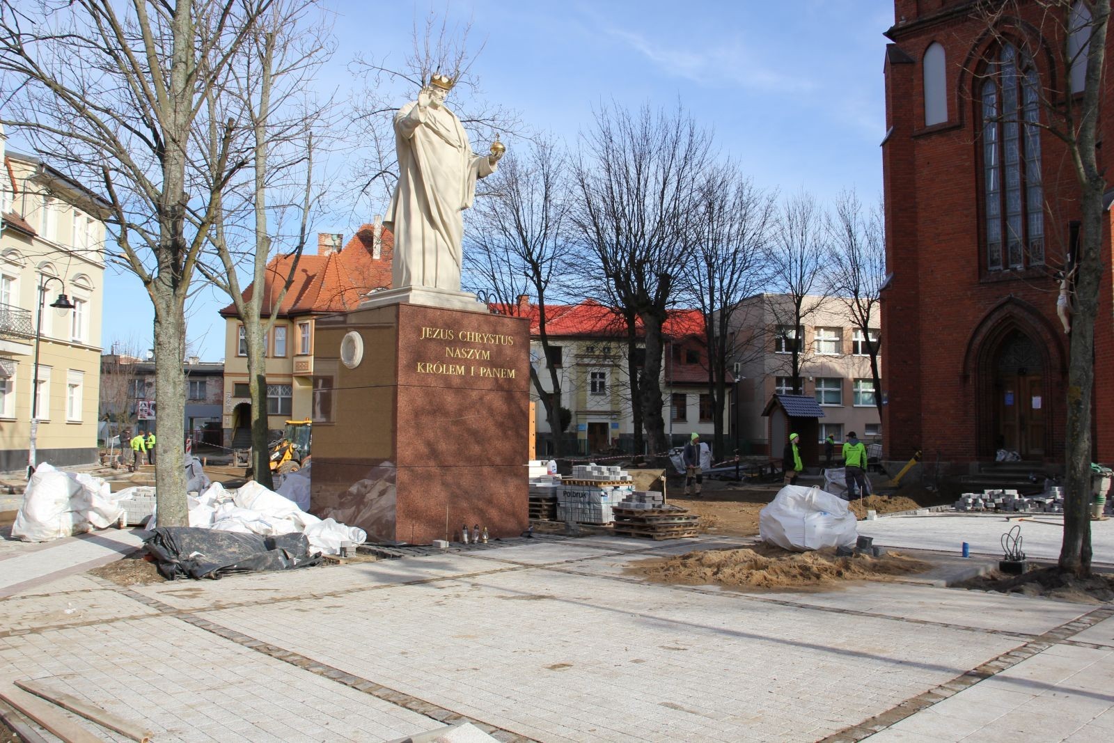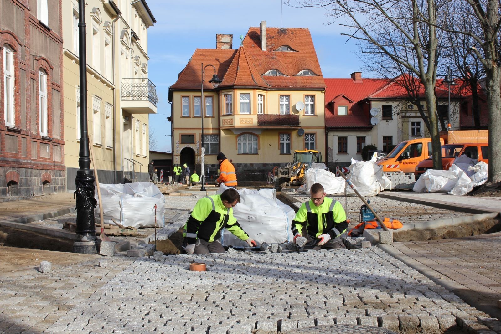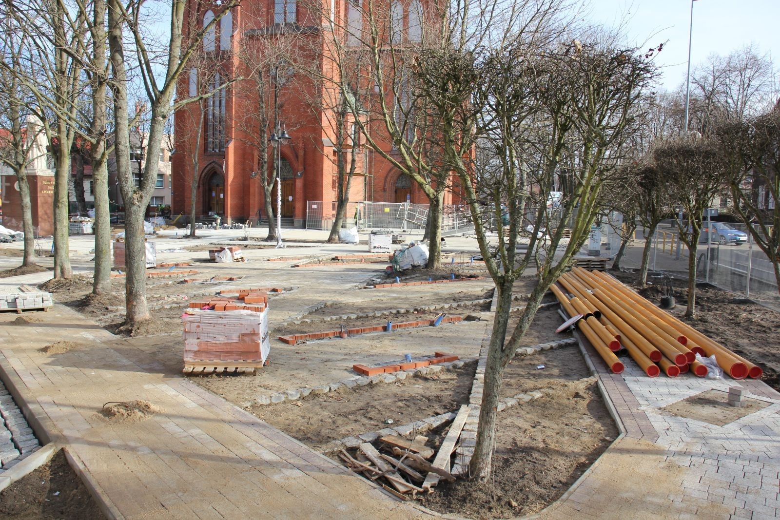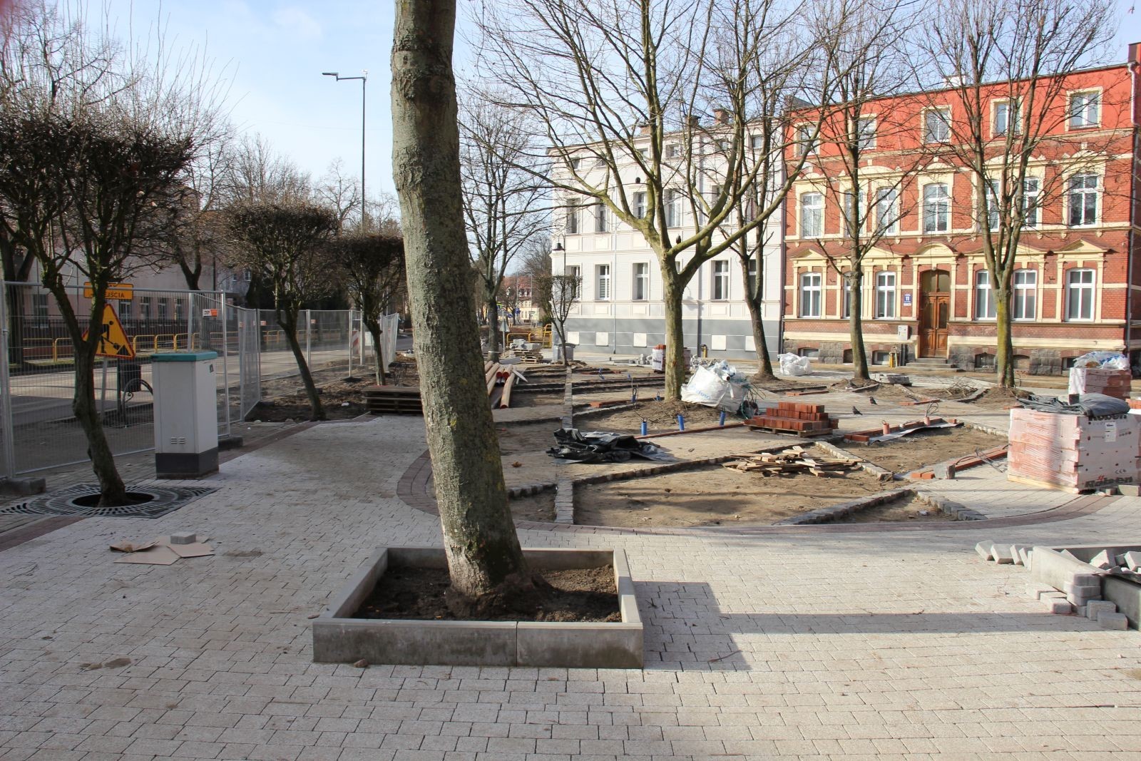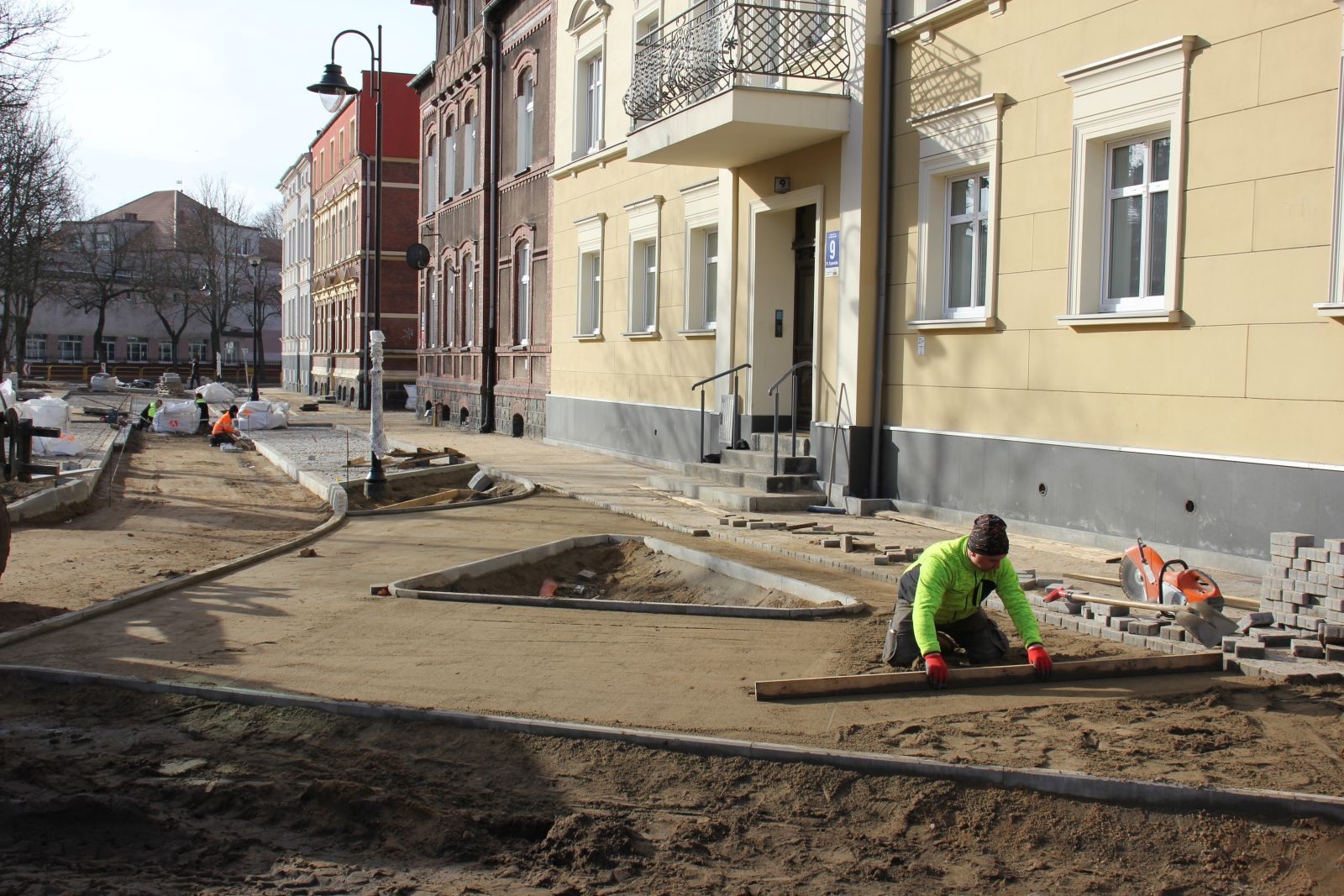 Po kilkutygodniowej przerwie spowodowanej dużymi opadami śniegu ruszyły intensywne prace przy kompleksowej przebudowie placu Kopernika. Inwestycja w otoczeniu zabytkowego kościoła pw. Najświętszej Maryi Panny Królowej Polski realizowana jest w ramach programu rewitalizacji „Lębork Nowy Świat”. Widać już pierwsze efekty prowadzonych robót. Plac zyska szlachetną nawierzchnię, stylowe oświetlenie, ławki i zieleń. Głównym celem inwestycji jest przywrócenie reprezentacyjnego charakteru przestrzeni. Dzięki wprowadzeniu funkcji rekreacyjnej oraz starannie zaplanowanej zieleni plac docelowo ma się stać miejscem wypoczynku okolicznych mieszkańców. Skorygowany zostanie układ drogowy. Powstaną miejsca postojowe, a ruch samochodowy zostanie uspokojony poprzez wprowadzenie ulic jednokierunkowych i ustanowienie strefy zamieszkania. Z racji na reprezentacyjny charakter przestrzeni publicznej projekt zakłada wykorzystanie szlachetnych nawierzchni z kostki granitowej.