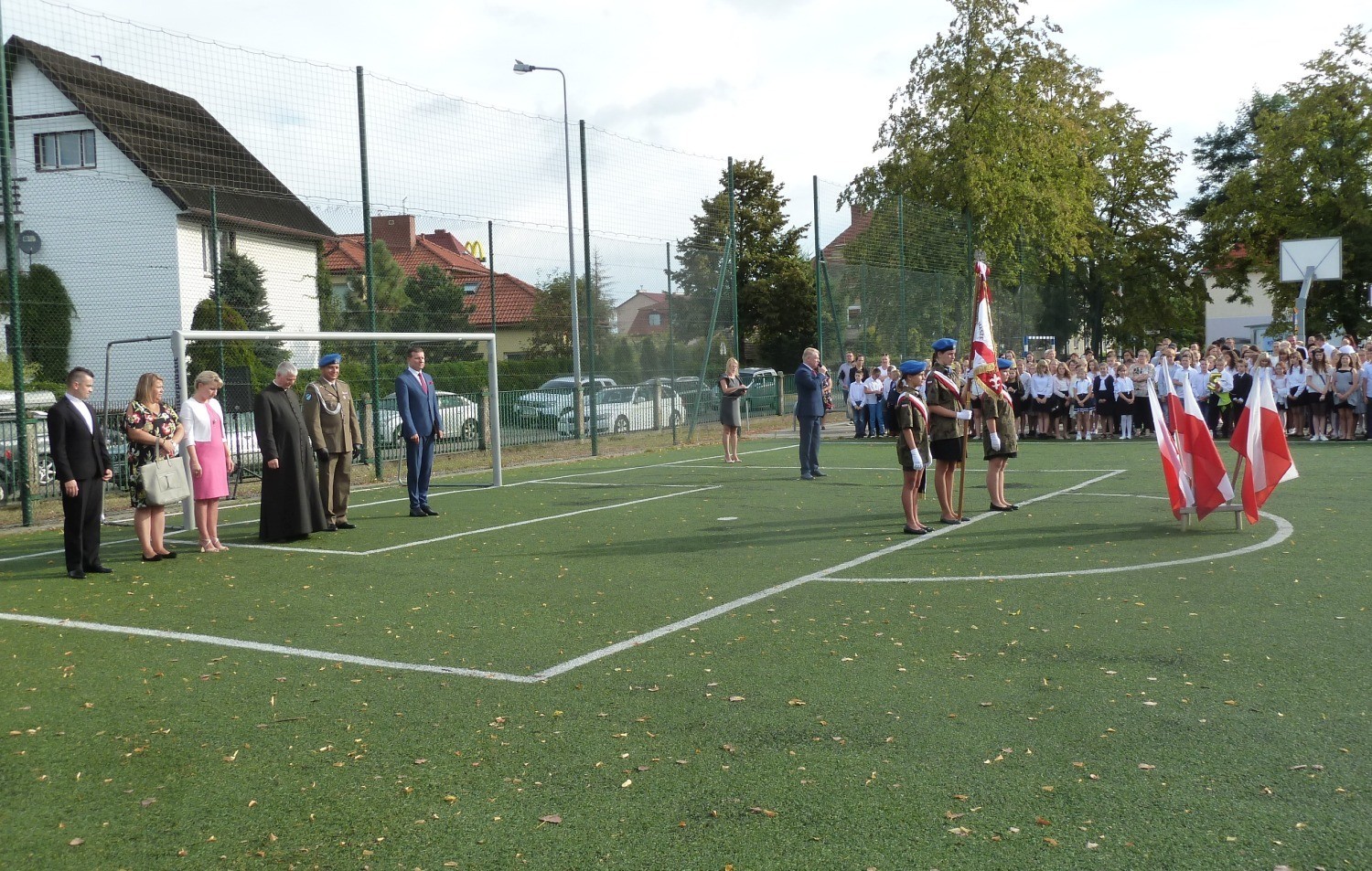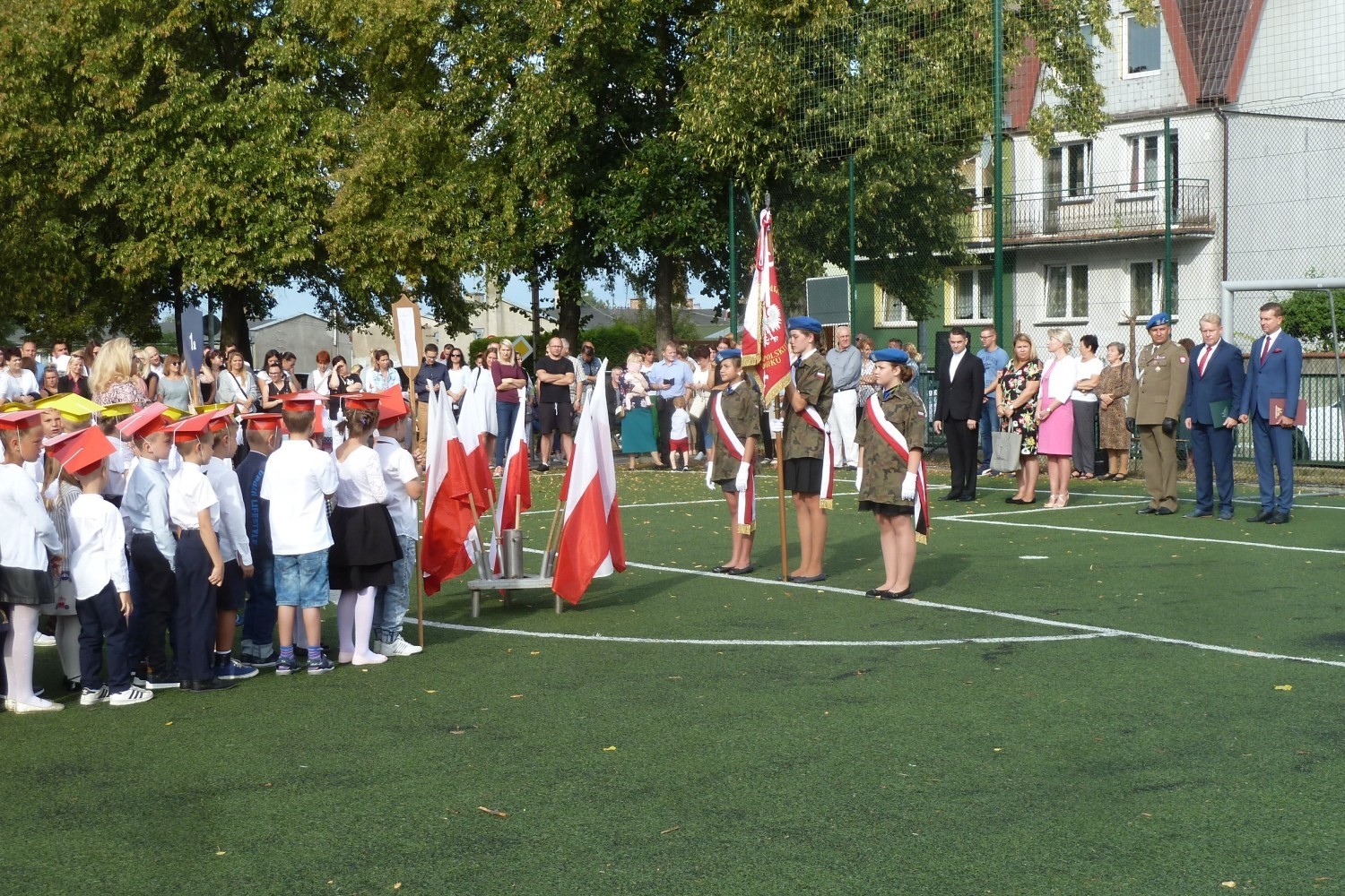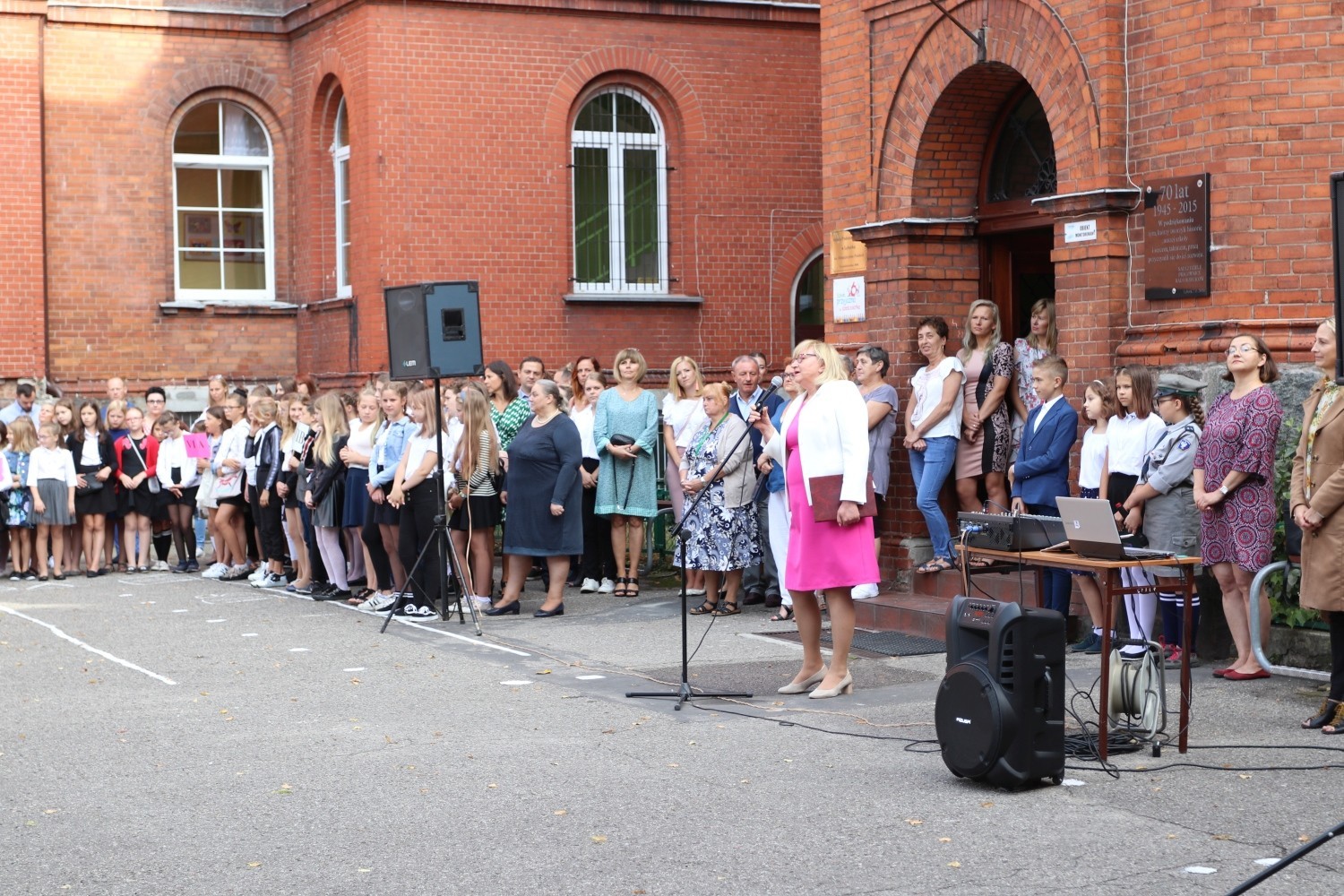 W Szkole Podstawowej nr 5 im. Wojska Polskiego powitanie nowego roku szkolnego odbyło się na przyszkolnym boisku. W uroczystości uczestniczył m.in. Sekretarz Miasta Marian Kurzydło oraz dowódca 1. lęborskiego batalionu zmechanizowanego im. gen. Jerzego Jastrzębskiego ppłk Kamil Hohm. Nowi uczniowie z klas „0” oraz „1a” i „1b” ślubowali na sztandar szkoły, oraz zostali pasowani przed dyrektora placówki Krzysztofa Wettę. W plenerze nowy rok szkolny witali także uczniowie i nauczyciele Szkoły Podstawowej nr 3.