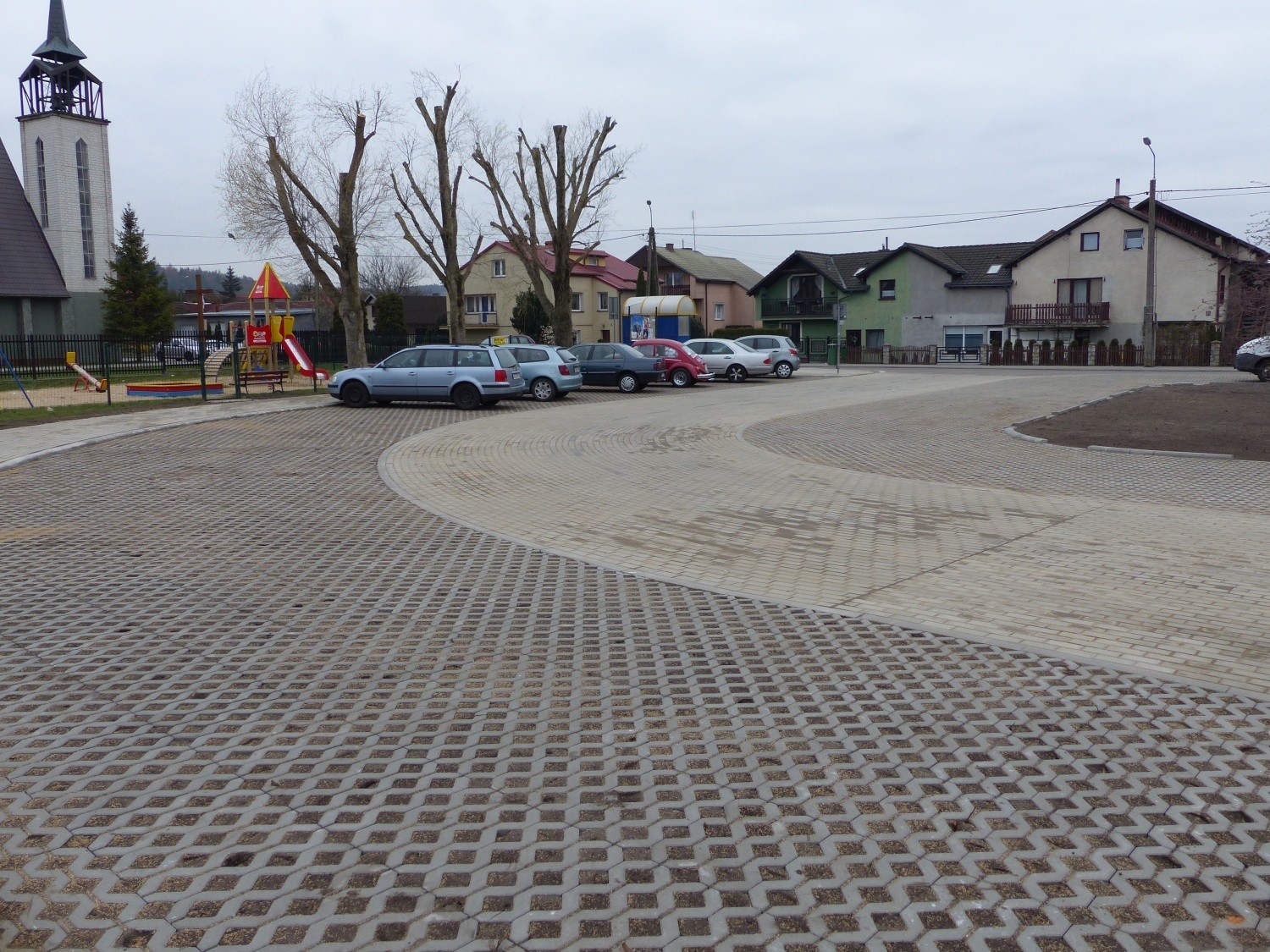 Rozbudowany o kilkanaście miejsc został także parking przy kościele pw. Miłosierdzia Bożego od strony ulicy Modrzewiowej. Wybudowano tam drogę dojazdową z kostki betonowej (264m2), wymieniono krawężniki, a z płyt ażurowych utwardzono miejsca postojowe (370m2). Nowy parking powstał dzięki zmodernizowaniu i przesunięciu trafostacji. Koszt prac wyniósł 99 tys. zł.