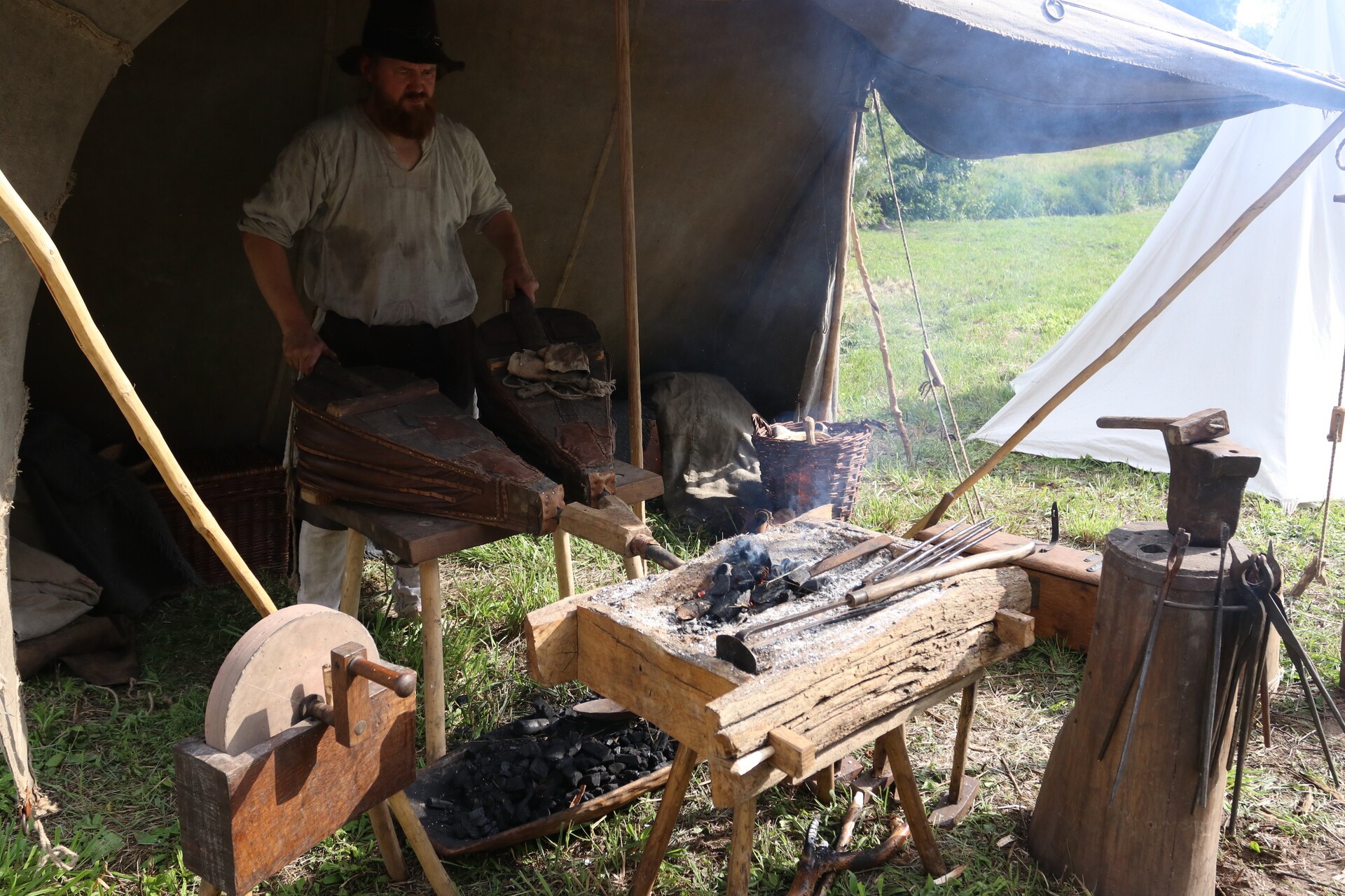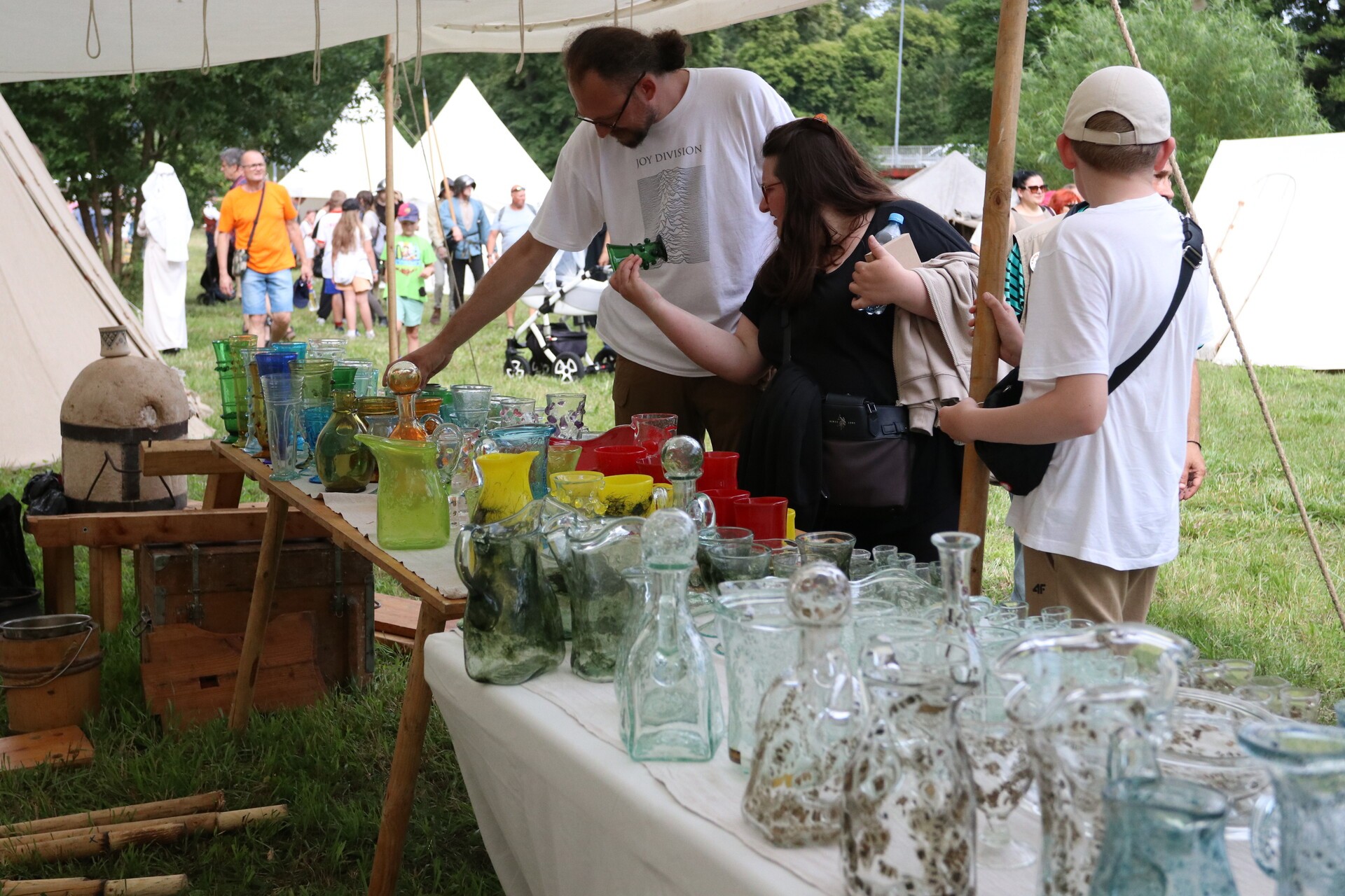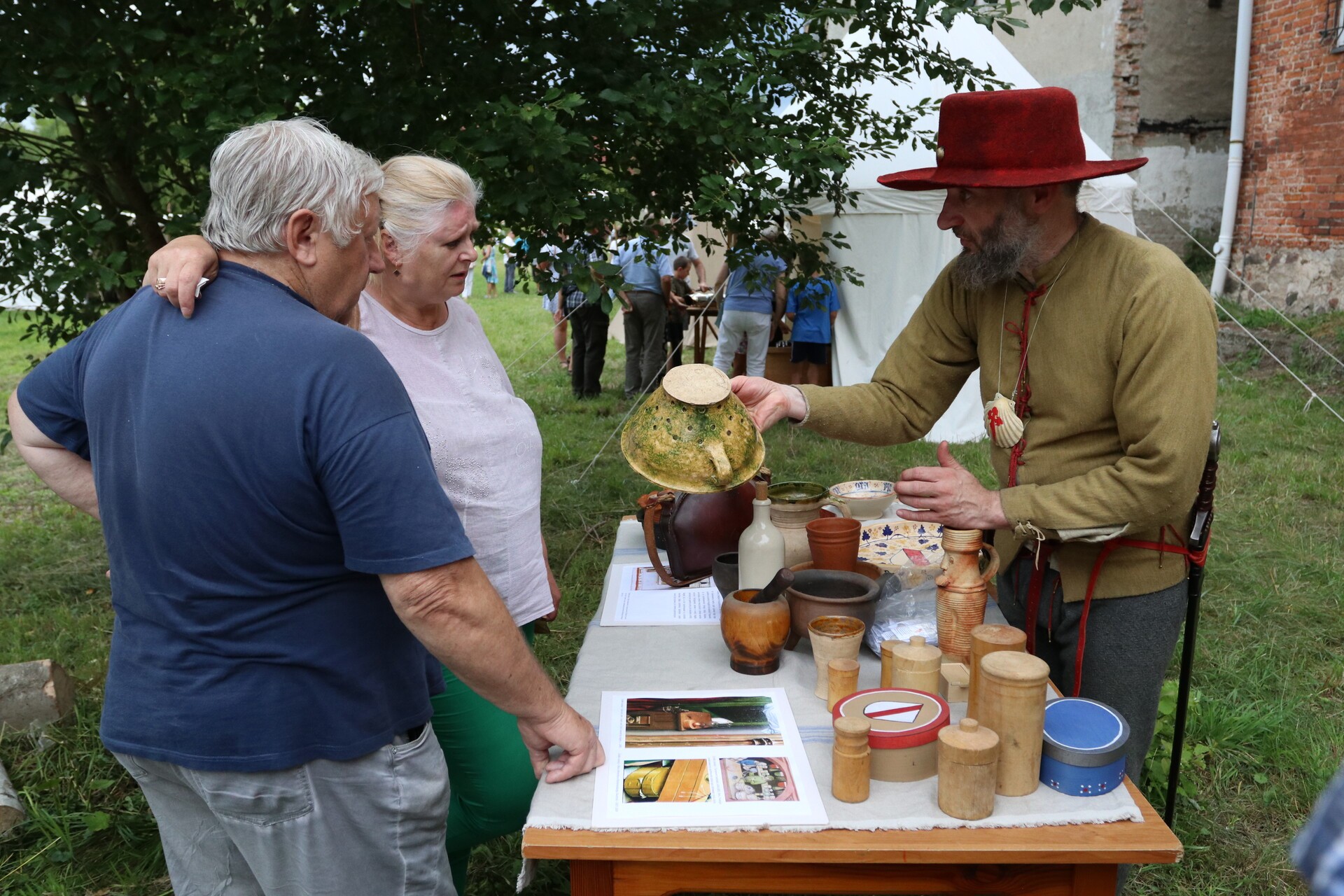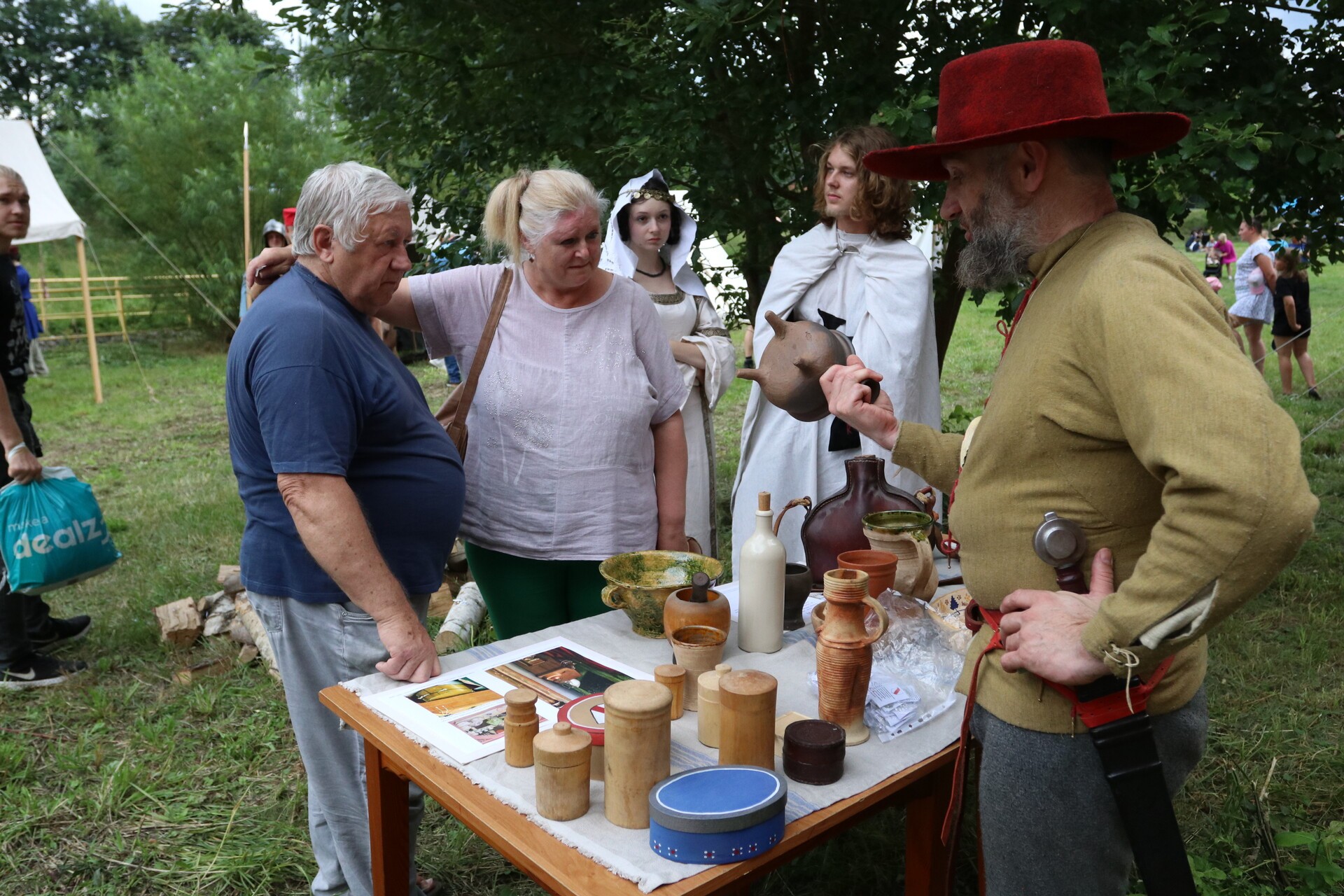 Wśród gości jarmarku jest wytwórca szkła, który pokazuje, jak kiedyś wyglądał taki proces przez ręczne dmuchanie i formowanie. Jest mydlarz wytwarzający mydło, kowal od broni i narzędzi – tworzący wierne repliki średniowiecznych militariów, rekonstruktor prezentujący wykonane przez siebie zbroje rycerskie, artyści, którzy malują tarcze złotem, aby oddać ducha epoki, można zobaczyć, jak wytwarzana była galanteria skórzana.
