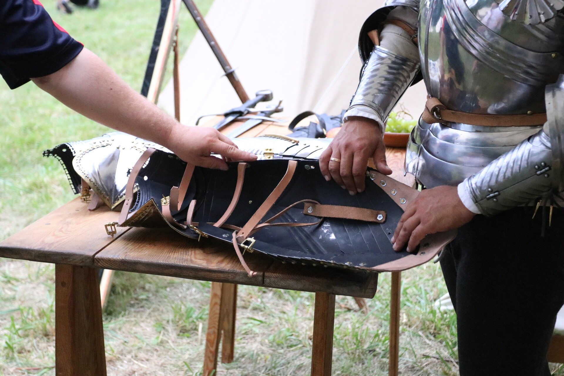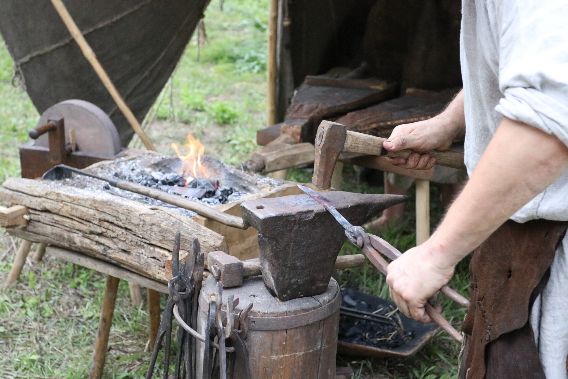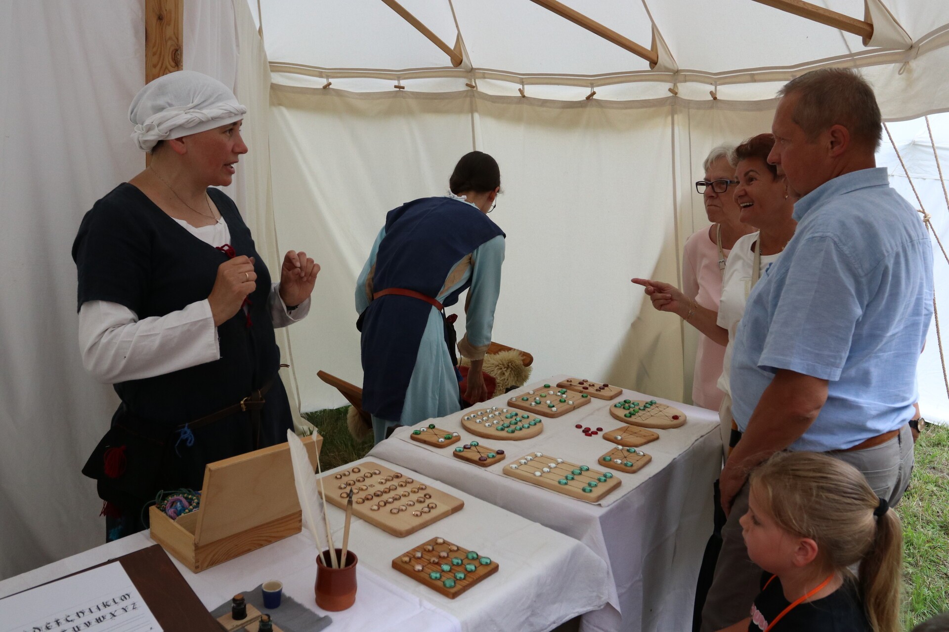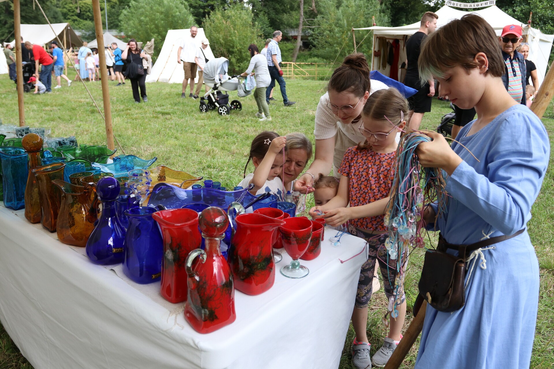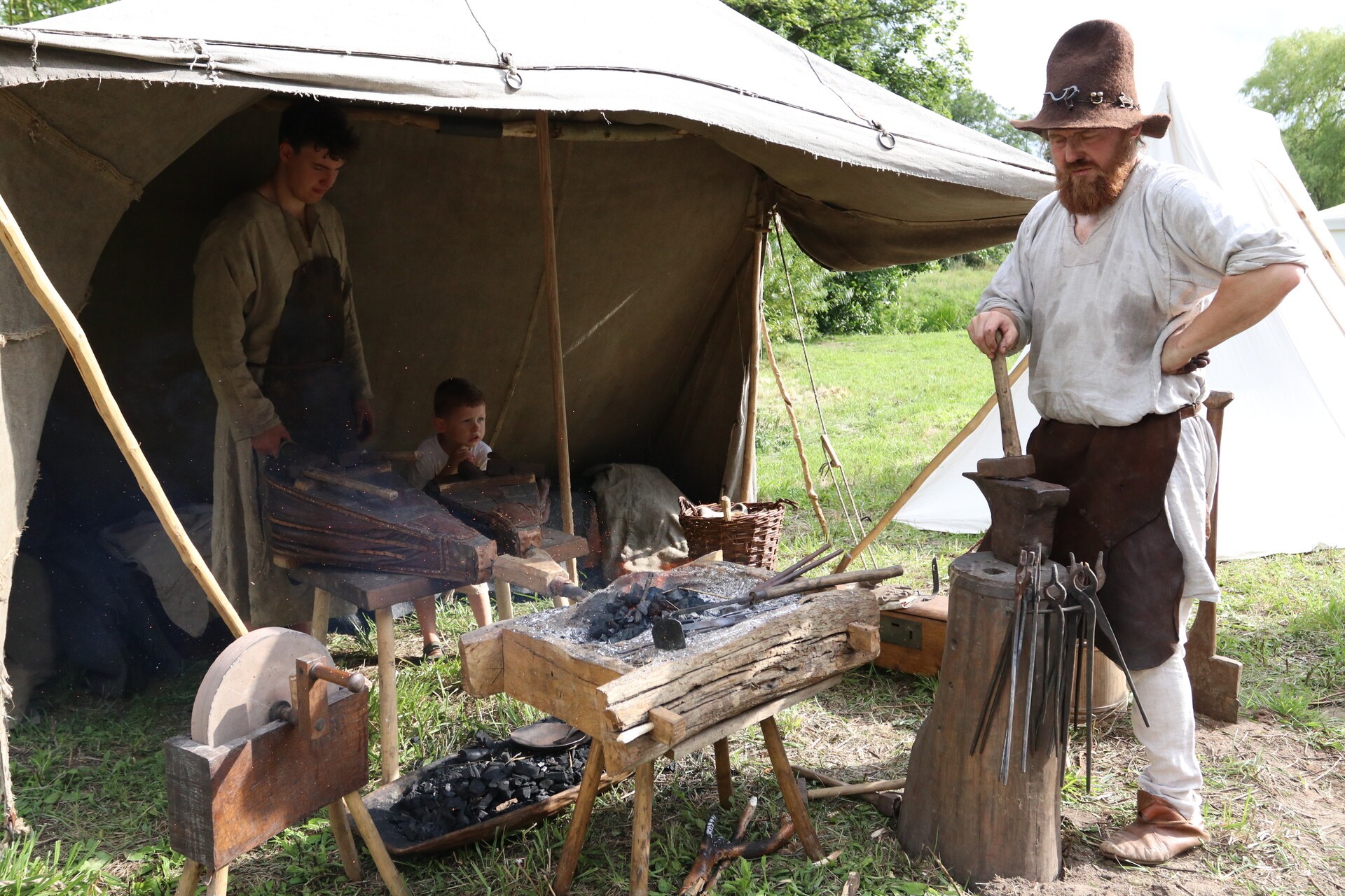 Wśród gości jarmarku jest wytwórca szkła, który pokazuje, jak kiedyś wyglądał taki proces przez ręczne dmuchanie i formowanie. Jest mydlarz wytwarzający mydło, kowal od broni i narzędzi – tworzący wierne repliki średniowiecznych militariów, rekonstruktor prezentujący wykonane przez siebie zbroje rycerskie, artyści, którzy malują tarcze złotem, aby oddać ducha epoki, można zobaczyć, jak wytwarzana była galanteria skórzana.