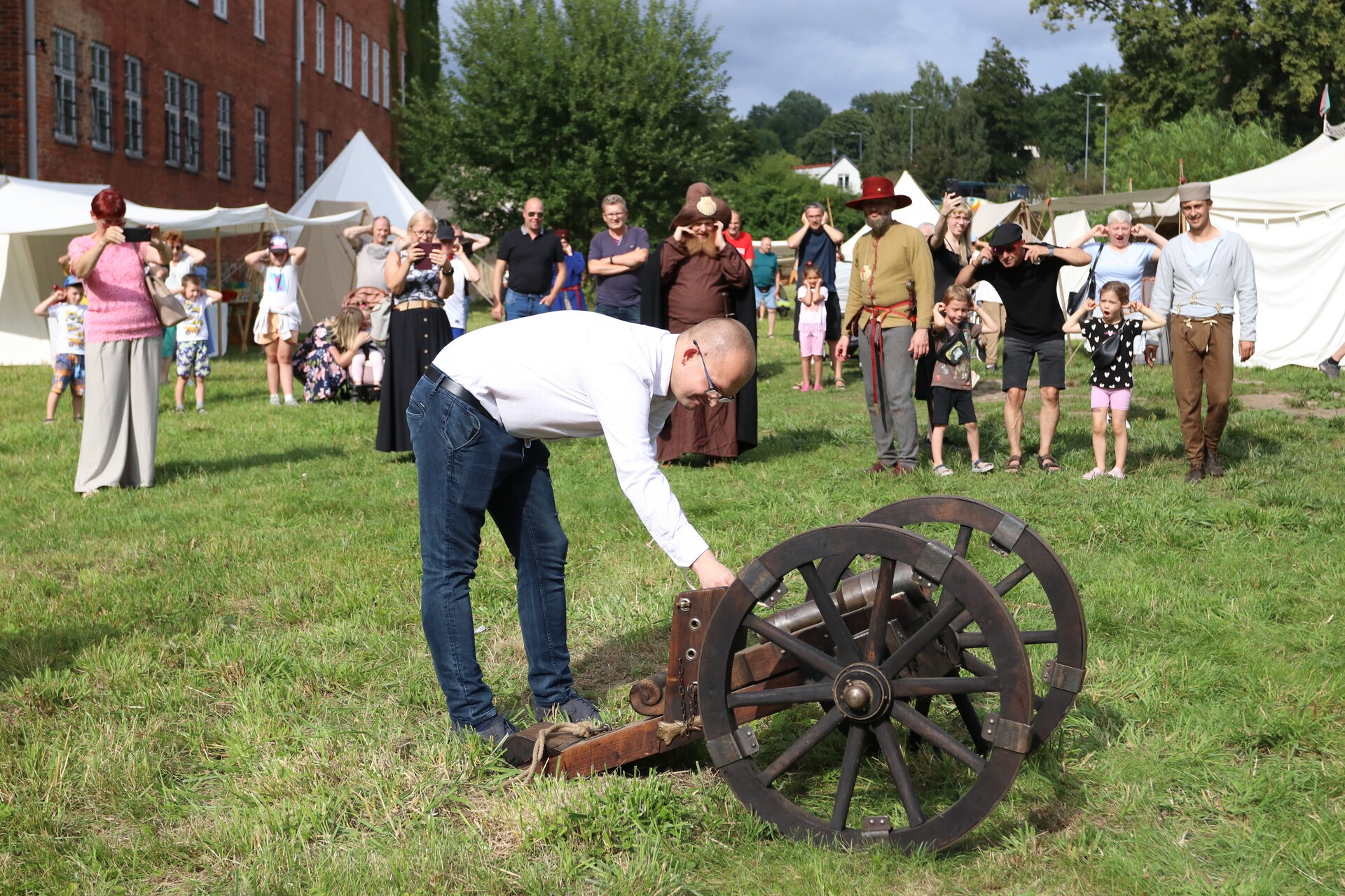 Huk czarnoprochowej salwy przeniósł Lębork wprost w średniowiecze – ruszyła druga, historyczna odsłona Święta Miasta! Oficjalnego otwarcia dokonał burmistrz Jarosław Litwin wspólnie z prezesem Lęborskiego Bractwa Historycznego Marcinem Ramczykiem, a towarzyszył im sam św. Jakub, w którego postać wcielił się Andrzej Pirch. Przez trzy dni – aż do niedzieli, 27 lipca – miasto żyć będzie rytmem dawnych wieków. Kolorowy jarmark pełen zapachów, dźwięków i widowiskowych atrakcji rozgościł się na zielonym terenie między dawnym zamkiem krzyżackim a rzeką Łebą.