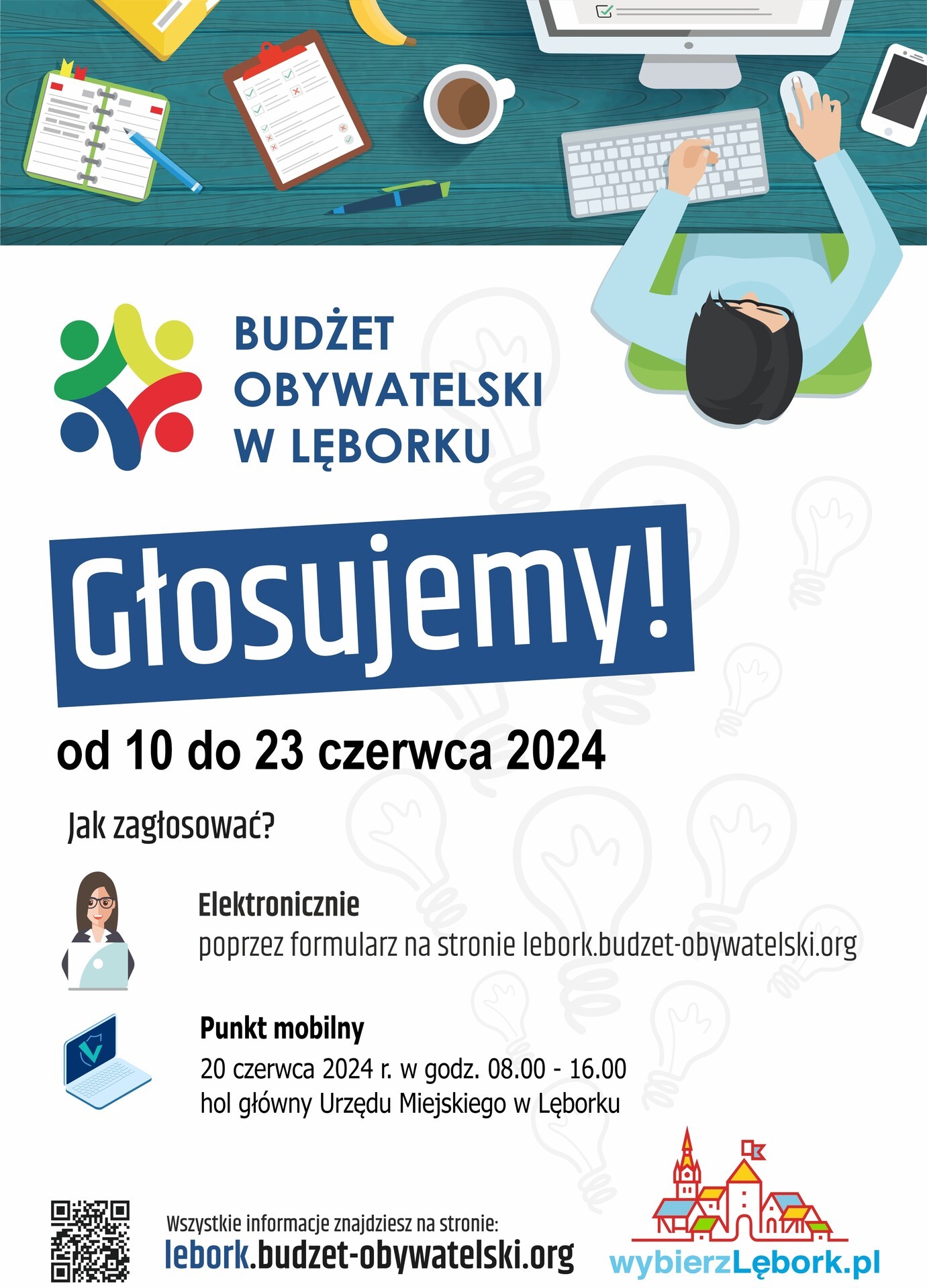 Zapraszamy mieszkańców Lęborka do udziału w głosowaniu nad projektami złożonymi w ramach Budżetu Obywatelskiego na 2025 rok. Głosowanie odbędzie się w formie elektronicznej za pomocą interaktywnego formularza dostępnego na stronie internetowej pod adresem: lebork.budzet-obywatelski.org.