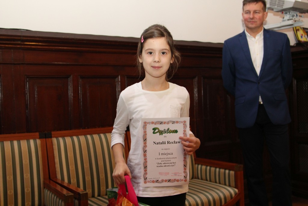 W dniu wczorajszym w Sali Rajców odbyło się podsumowanie czterech konkursów o tematyce zdrowotnej. Komisja konkursowa oceniła zgłoszone prace i przyznała nagrody. Przy ocenie nadesłanych prac komisja konkursowa wzięła następujące kryteria: zgodność z tematem (wartości merytoryczne), pomysłowość, oryginalność formy, estetyka wykonania. Nagrody w imieniu Burmistrza Miasta Witolda Namyślaka wręczał Sekretarz Miasta, Marian Kurzydło.