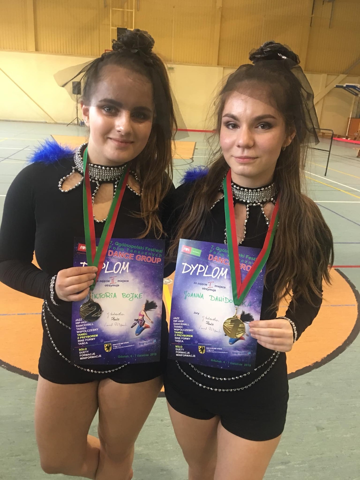- 3 miejsce Asia Dawidowska i Wiktoria Bojke taniec współczesny duety pow. 16 lat.