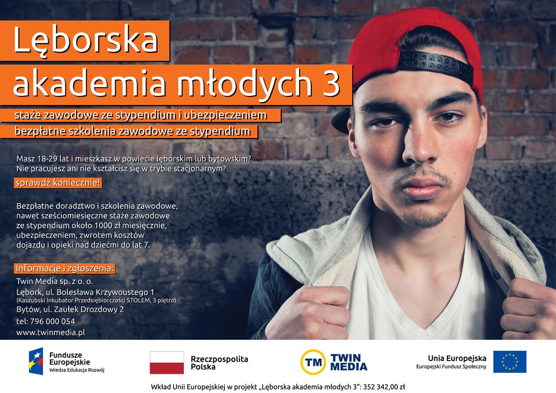 Kaszubski Inkubator Przedsiębiorczości „STOLEM” w Lęborku zaprasza mieszkańców powiatu lęborskiego do skorzystania ze wsparcia oferowanego w ramach II edycji projektu „Lęborska akademia młodych 3”. W ramach projektu oferowane jest doradztwo zawodowe, szkolenia zawodowe i płatne staże przyuczające do zawodu.