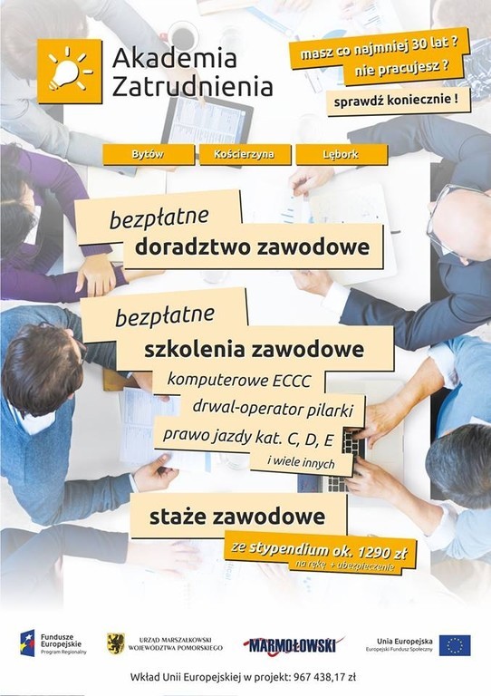 Projekt „Akademia Zatrudnienia” jest współfinansowany przez Unię Europejską w ramach Europejskiego Funduszu Społecznego w ramach Regionalnego Programu Operacyjnego Województwa Pomorskiego na lata 2014-2020.