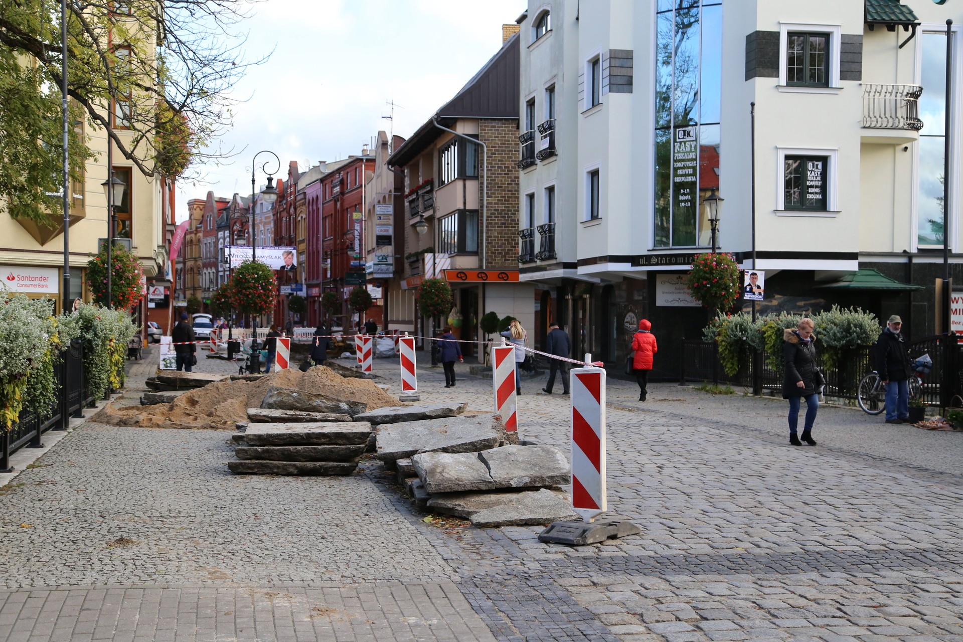 W poniedziałek 22 października rozpoczęły się prace budowlane na ulicy Staromiejskiej – na odcinku od mostu do skrzyżowania z ulicą Curie-Skłodowskiej ułożona zostanie nowa nawierzchnia z kamiennych i granitowych płyt. Środkowa część deptaka wyłożona będzie nowymi płytami z granitu o powierzchni 25 na 25 cm, co ma zwiększyć komfort chodzenia, szczególnie paniom w butach na obcasach oraz dziecięcym wózkom.