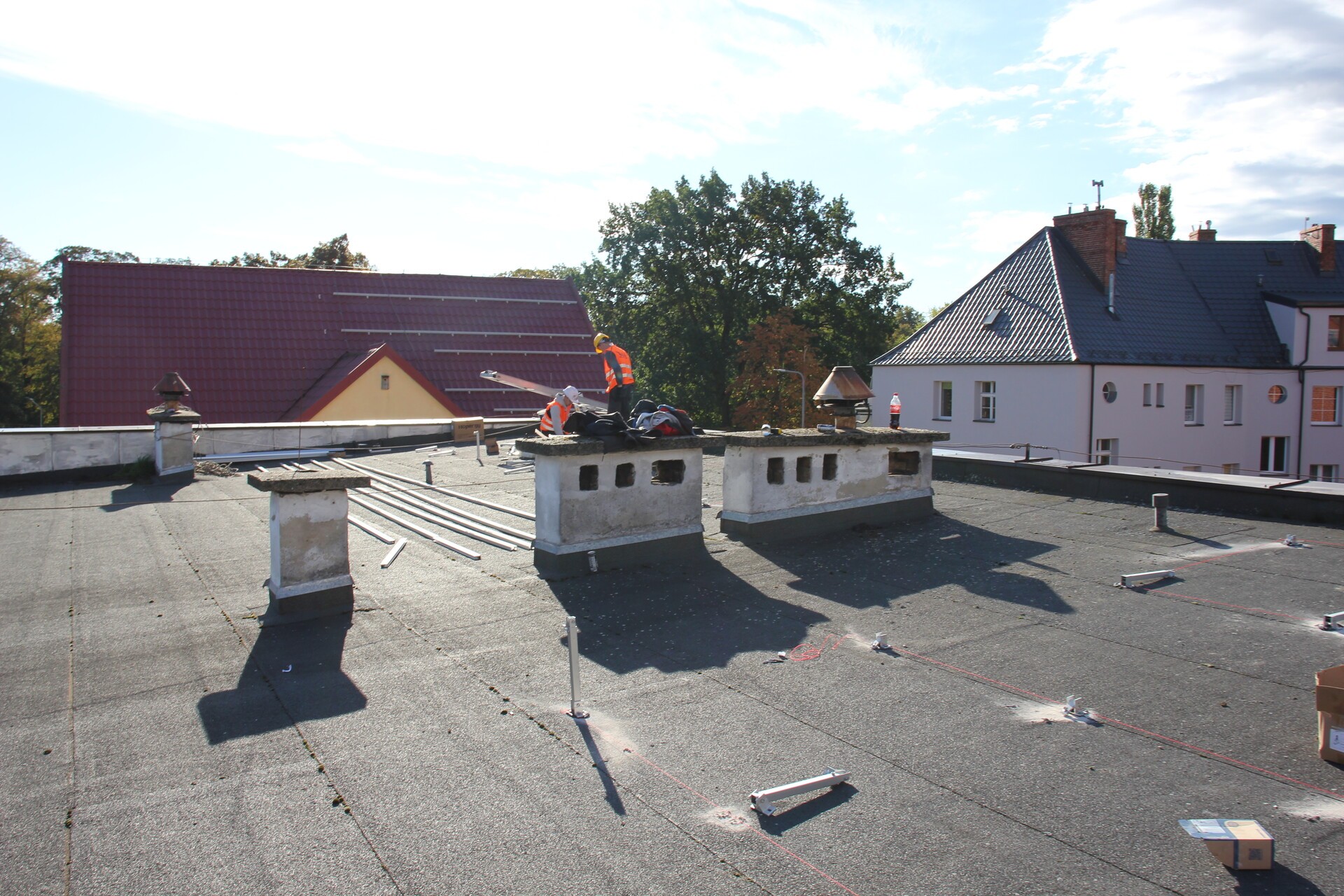 Na zdjęciach prace montażowe prowadzone na Przedszkolu nr 1.