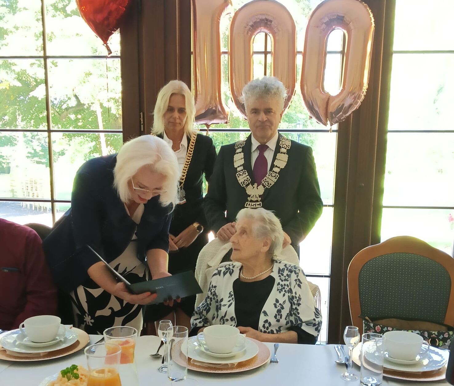 100 lat skończyła w poniedziałek pani Magdalena Studzińska, mieszkanka Lęborka. Jubileusz był okazją do rodzinnego świętowania, oraz do wizyty u Jubilatki z życzeniami i prezentem Burmistrza Lęborka Witolda Namyślaka.