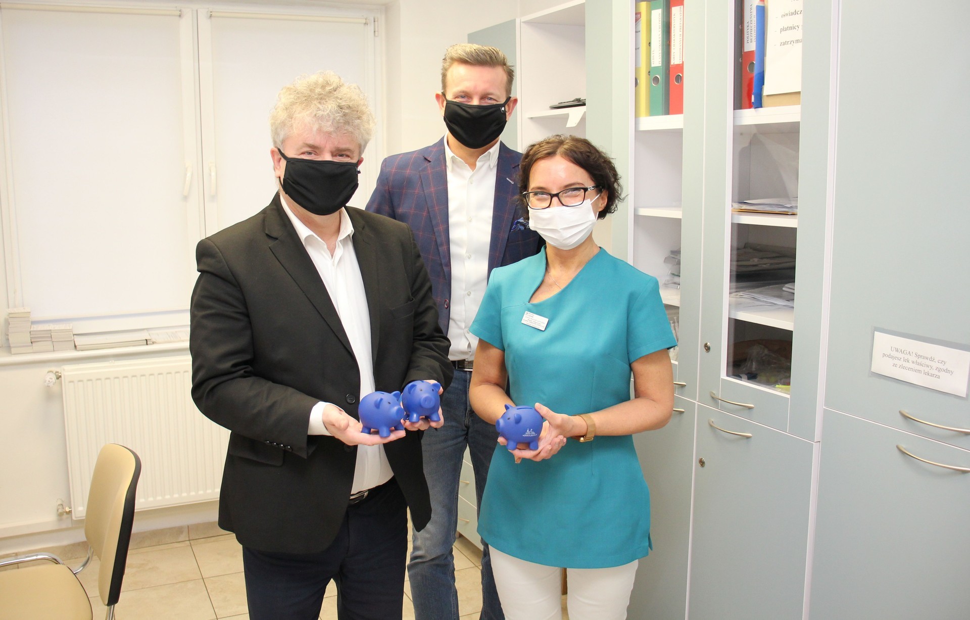 Z tej okazji Burmistrz Lęborka Witold Namyślak i Sekretarz Miasta Marian Kurzydło przekazali dla szczepiących się dzieci drobne upominki – sto skarbonek świnek z logo miasta. Skarbonki przekazane zostały na ręce Koordynator Szczepień – Anny Kalisz-Szyszki.