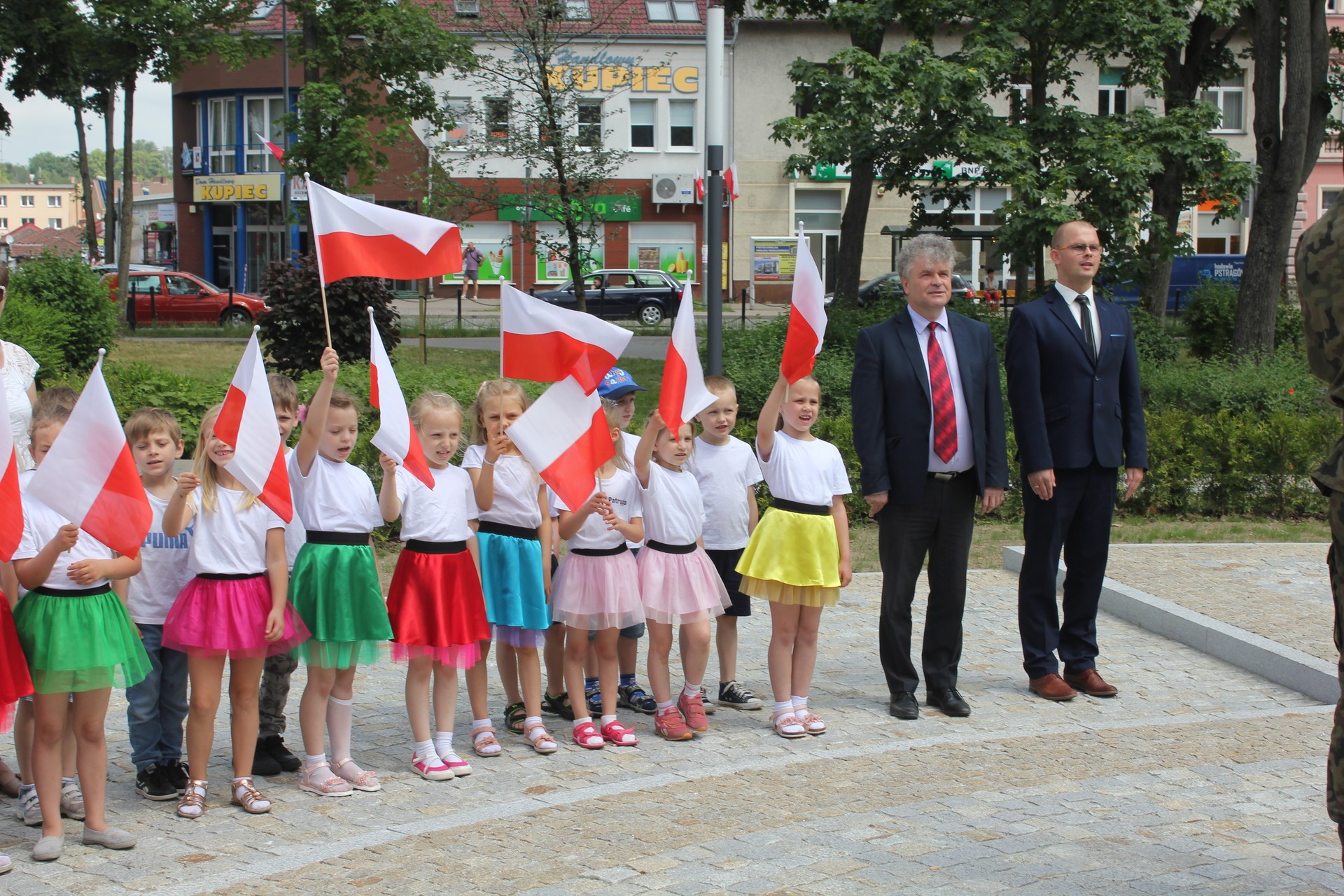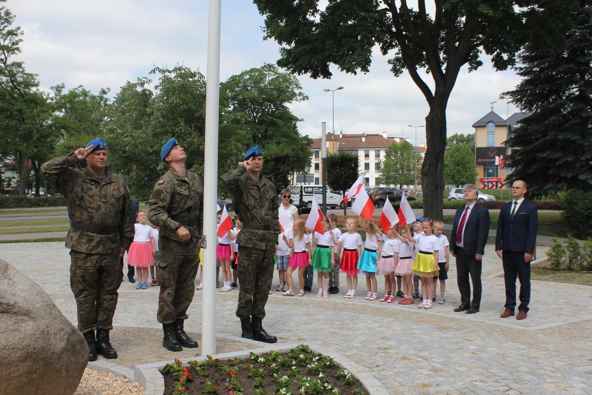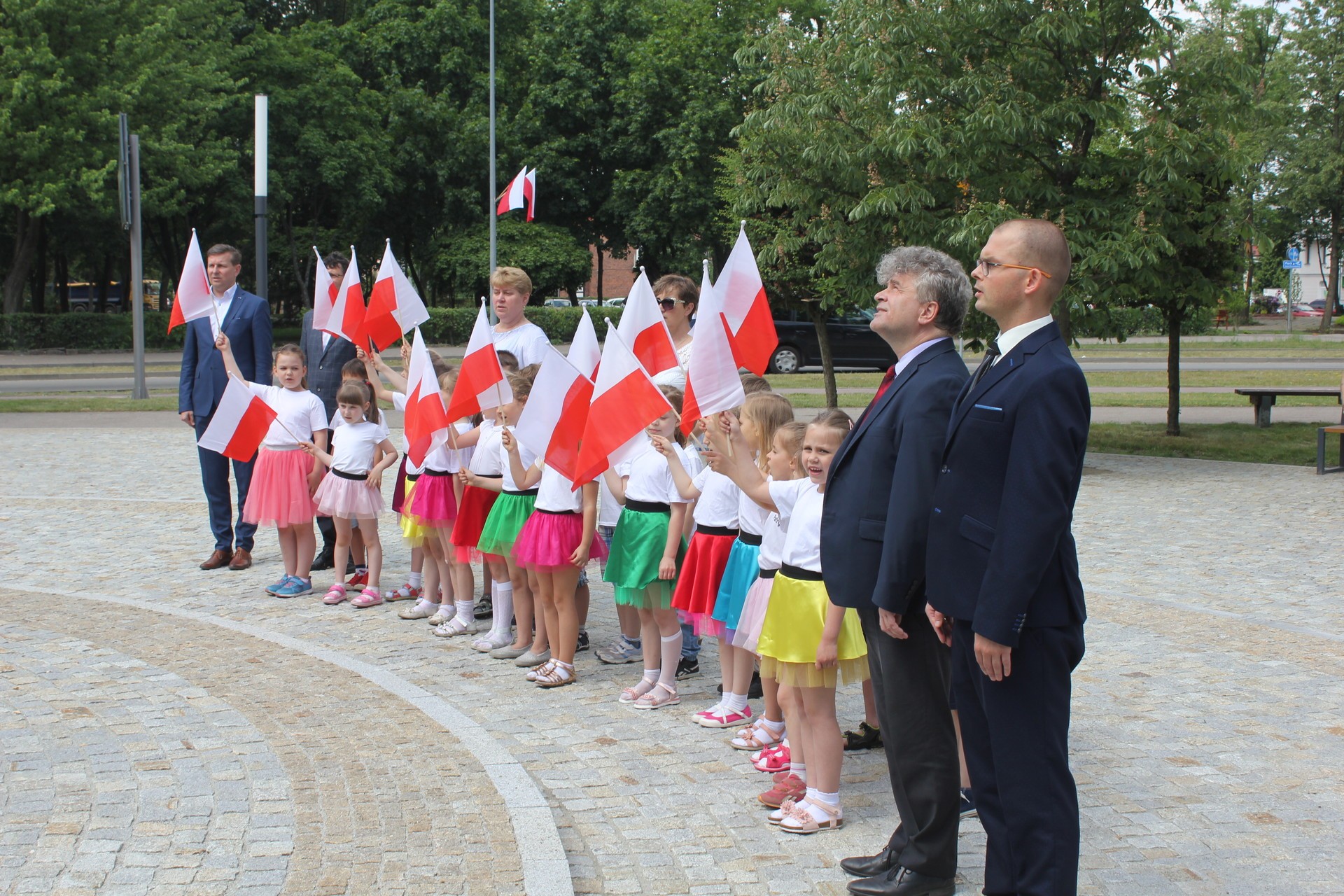 Na maszt przy Obelisku Niepodległości na Skwerze Orła Białego 7 czerwca br. wciągnięto biało-czerwoną flagę. Wciągnięcia flagi dokonał poczet flagowy 1. lęborskiego batalionu zmechanizowanego im. generała Jerzego Jastrzębskiego. W kameralnej uroczystości udział wziął Burmistrz Miasta Witold Namyślak, I Zastępca Burmistrza Jerzy Pernal, Sekretarz Miasta Marian Kurzydło, Przewodniczący Rady Miejskiej Jarosław Litwin oraz dzieci z Przedszkola nr 1.