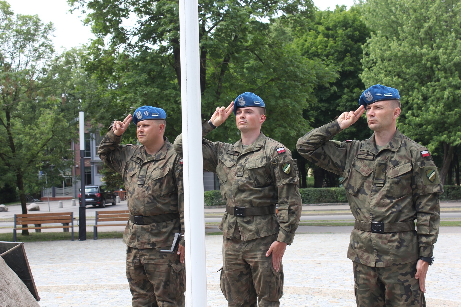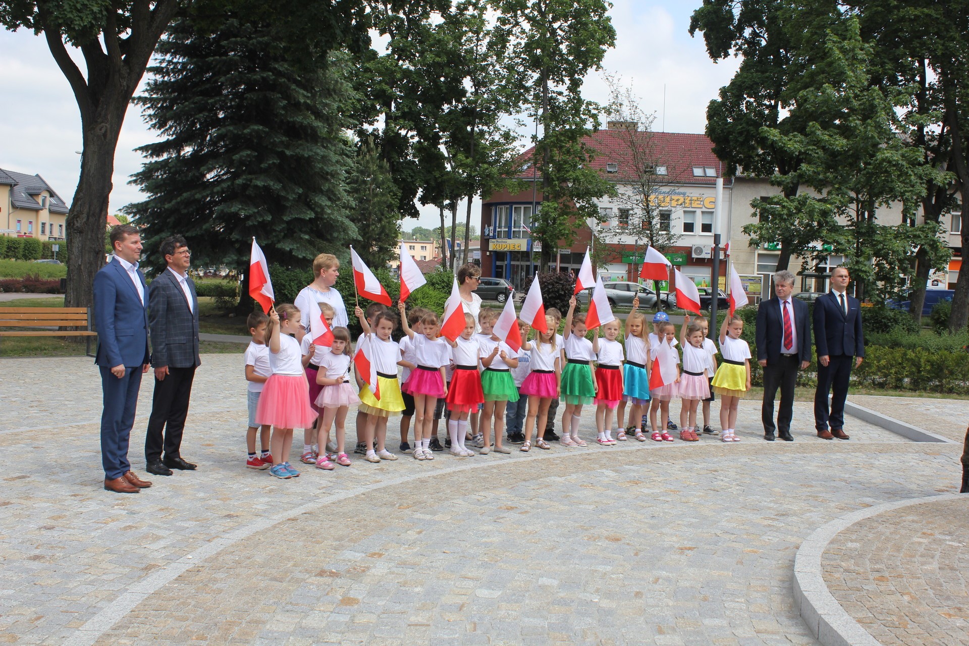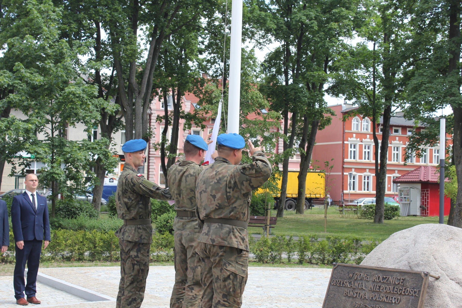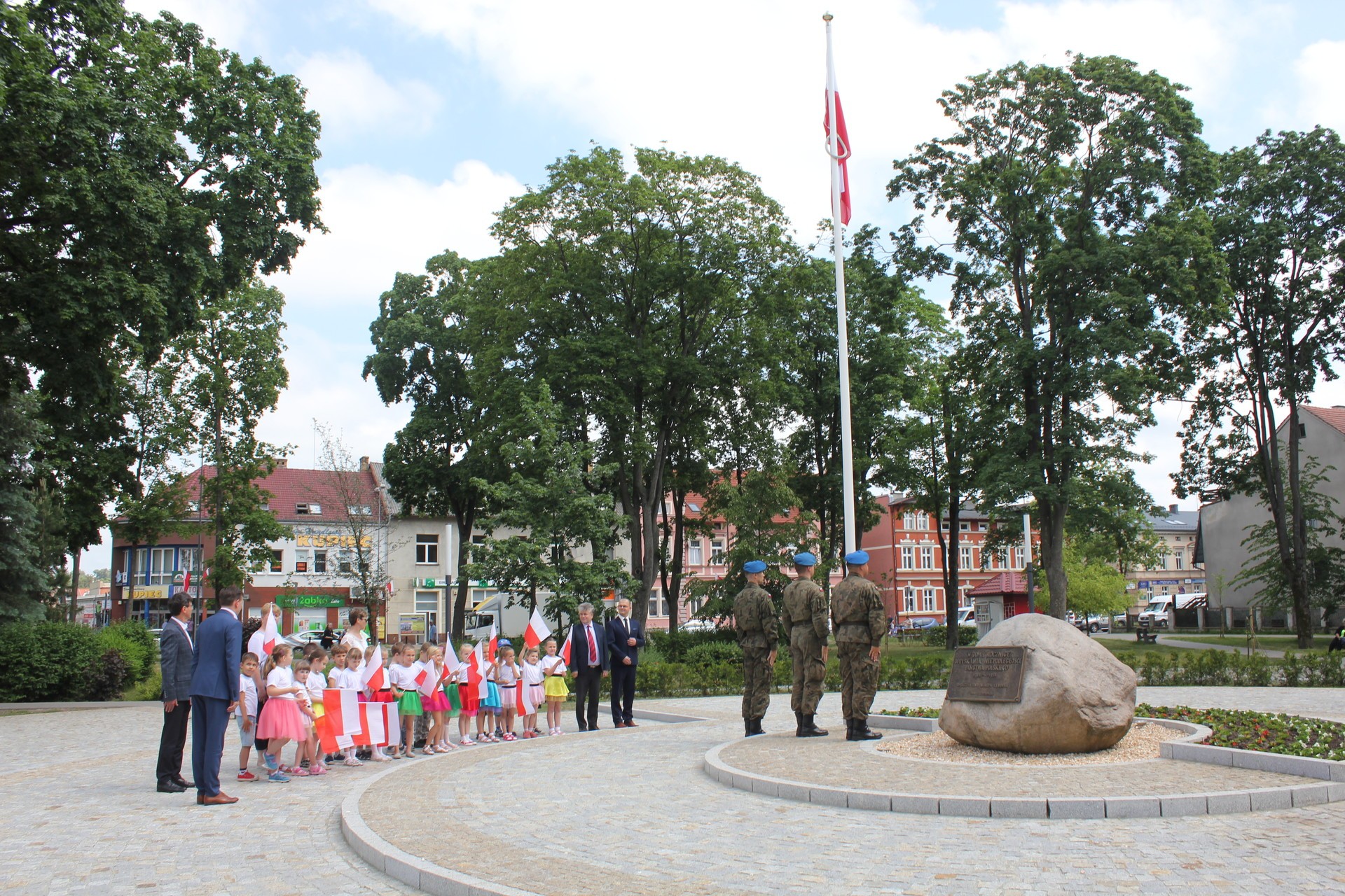 Na maszt przy Obelisku Niepodległości na Skwerze Orła Białego 7 czerwca br. wciągnięto biało-czerwoną flagę. Wciągnięcia flagi dokonał poczet flagowy 1. lęborskiego batalionu zmechanizowanego im. generała Jerzego Jastrzębskiego. W kameralnej uroczystości udział wziął Burmistrz Miasta Witold Namyślak, I Zastępca Burmistrza Jerzy Pernal, Sekretarz Miasta Marian Kurzydło, Przewodniczący Rady Miejskiej Jarosław Litwin oraz dzieci z Przedszkola nr 1.