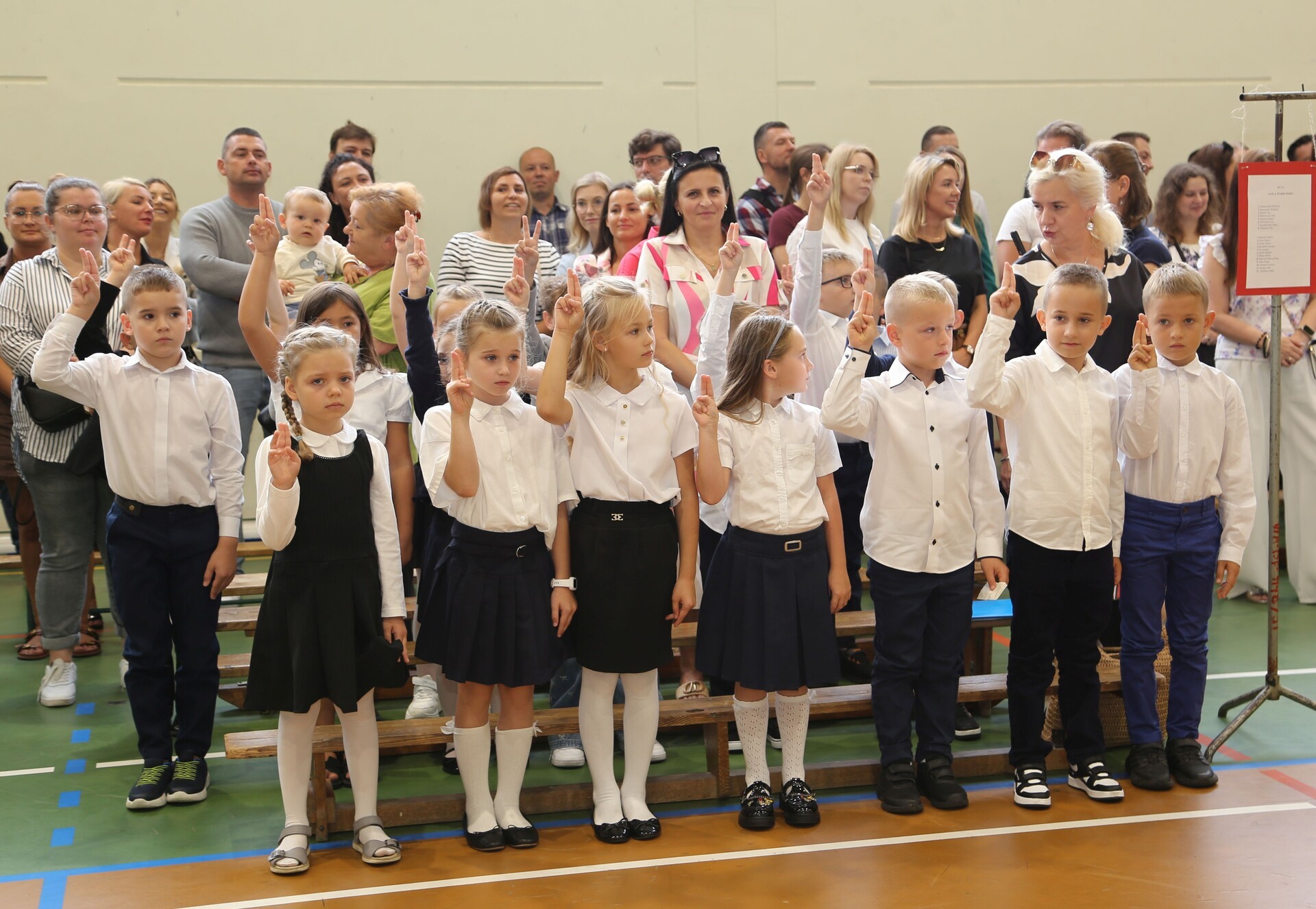 - 39 lat temu sam stałem wprawdzie w innej sali, ale jako uczeń klasy pierwszej w tej szkole i również składałem swoje pierwsze ślubowanie. Dziś mogę z przekonaniem powiedzieć: to naprawdę dobra szkoła – miejsce, które daje solidne fundamenty, rozwija talenty i uczy przyjaźni na całe życie. Drodzy Pierwszoklasiści, życzę Wam w imieniu swoim, ale też burmistrza Jarosława Litwina, odwagi, ciekawości świata i radości z nauki. Niech każdy dzień przynosi Wam nowe przygody i powody do dumy! – powiedział Krzysztof Król, zastępca burmistrza Miasta Lęborka.