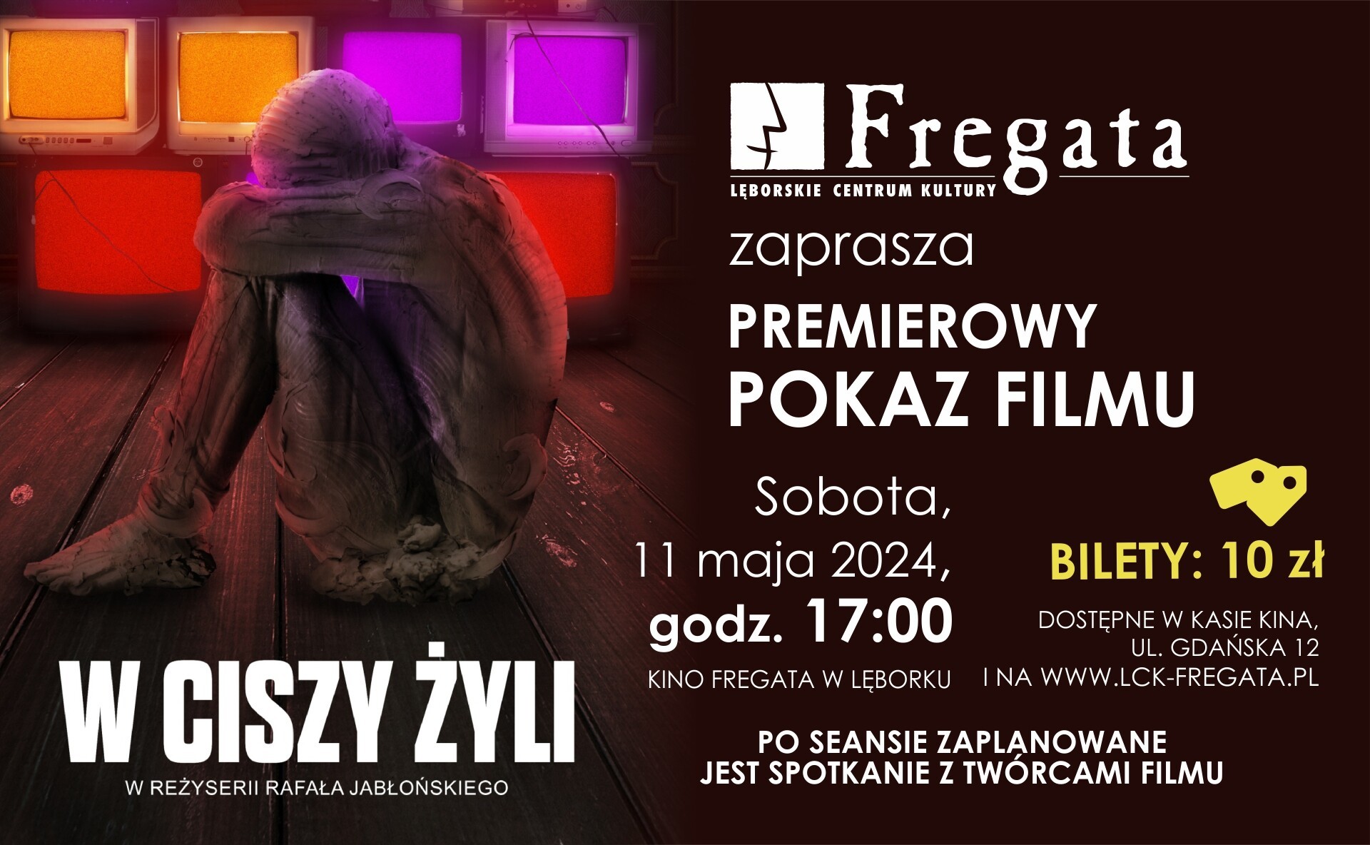 Na pokaz zapraszamy w sobotę 11 maja 2024 roku. Początek o godzinie 17:00. Po seansie zaplanowane jest spotkanie z twórcami filmu. Bilety w cenie 10 złotych dostępne są w kasie kina oraz z pośrednictwem strony internetowej www.lck-fregata.pl.