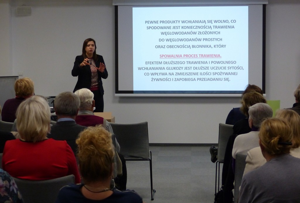 O odżywianiu osób z cukrzycą mówiła dietetyk, edukator diabetologiczny Ewa Dygasiewicz z Gdańska. Pielęgniarka środowiskowa Elżbieta Dzieciuch przedstawiła z kolei zagrożenia występujące przy cukrzycy.