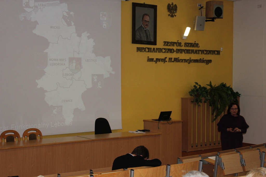 11 marca 2015r. w Zespole Szkół Mechaniczno - Informatycznych w Lęborku odbyło się spotkanie z Radnymi, którym zaprezentowana została Strategia Miejskiego Obszaru Funkcjonalnego Lęborka. Spotkanie zostało poprowadzone przez Wojciecha Dziemianowicza, przedstawiciela firmy „GEOPROFIT”, która opracowała Strategię Miejskiego Obszaru Funkcjonalnego Lęborka w ramach projektu „Obszar funkcjonalny Ziemi Lęborskiej”.