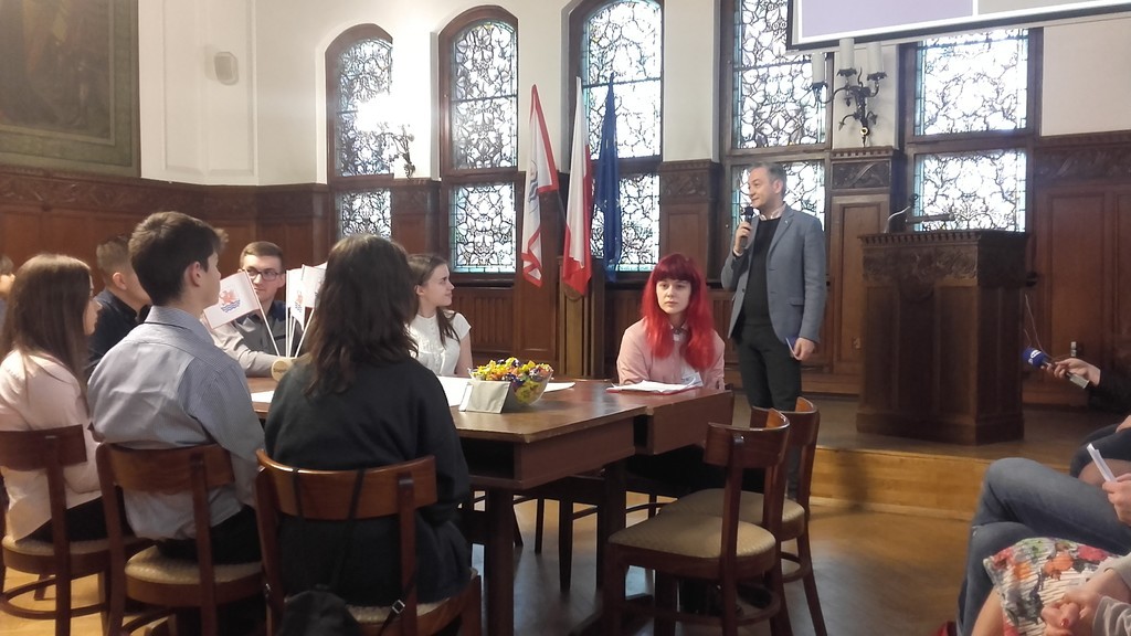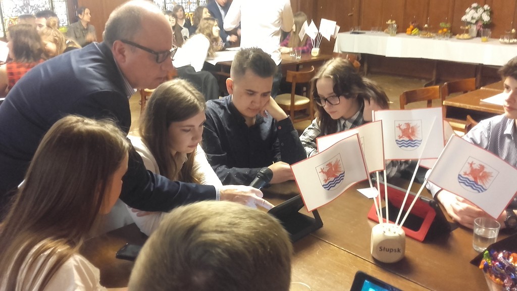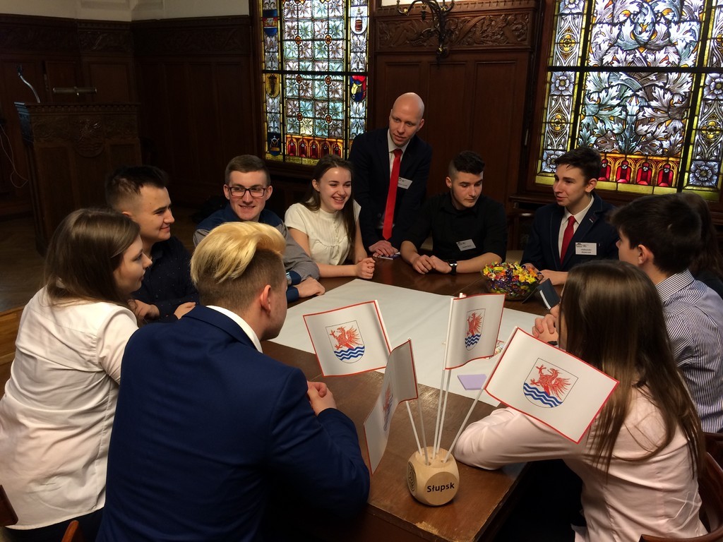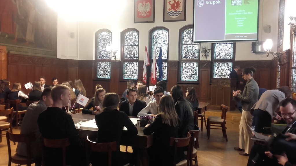 31 marca w słupskim ratuszu przedstawiciele lęborskiej Młodzieżowej Rady Miasta wzięli udział w spotkaniu z Radami Miast Ustki, Kościerzyny i Słupska. Uczestników przywitał Prezydent Miasta - Robert Biedroń.