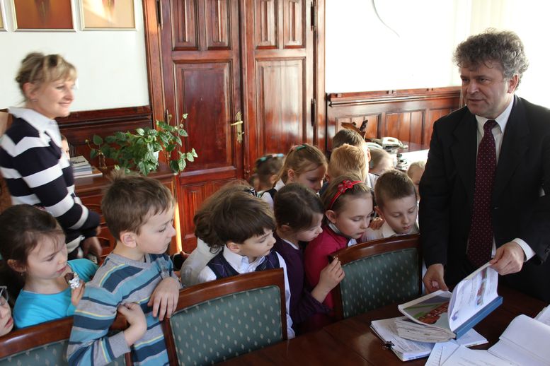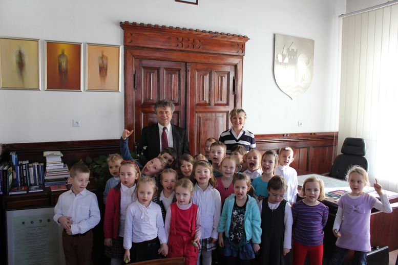 Dzieci chętnie zadawały pytania odnośnie pracy Burmistrza oraz urzędników. Na zakończenie dzieci otrzymały czekoladowe zajączki wielkanocne, a w ramach podziękowania przedszkolaki zaśpiewały piosenkę i zarecytowały wiersz.