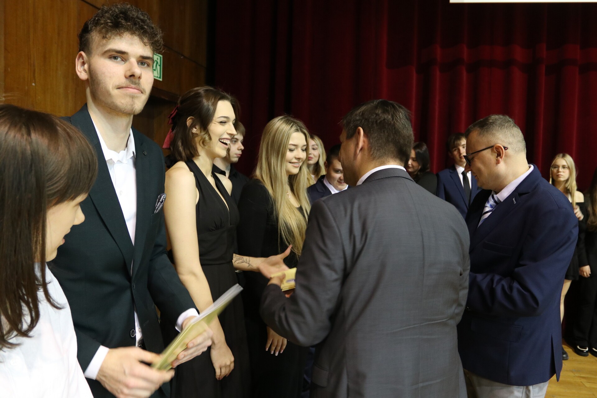 Jarosław Litwin, obecny burmistrz Lęborka, nieprzypadkowo był gościem uroczystości właśnie w tej szkole - jest jej absolwentem i w niej zdał maturę. Przywołał emocje, jakie przeżywał, kiedy sam kończył edukację. Teraz, z perspektywy lat i doświadczeniem życiowym, podzielił się ważną refleksją: „Muszę Wam powiedzieć, że nigdy nie byłem prymusem. Mogą to potwierdzić niektórzy nauczyciele, którzy są tu dziś z nami. Moje nazwisko nie świeciło w rankingach, nie miałem samych piątek, ale miałem coś, co dziś uważam za najważniejsze - marzenia i przekonanie, że chcę i mogę coś zmienić. Najpierw w sobie, a potem wokół siebie.