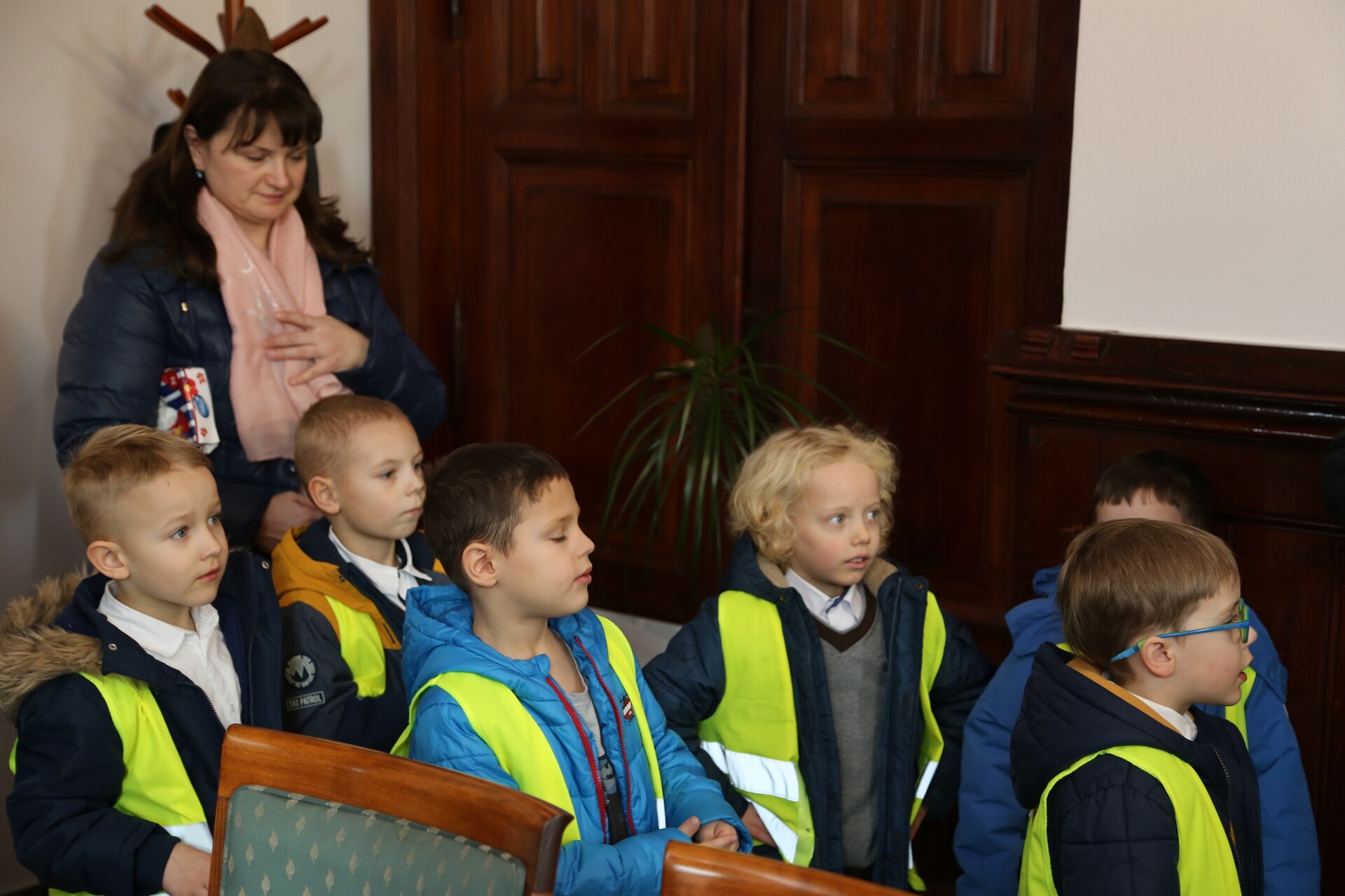 Przedszkolaków przyjął burmistrz Witold Namyślak wraz z zastępcami Jerzym Pernalem i Teresą Ossowską-Szarą, którzy poczęstowali sympatycznych gości słodkościami.
